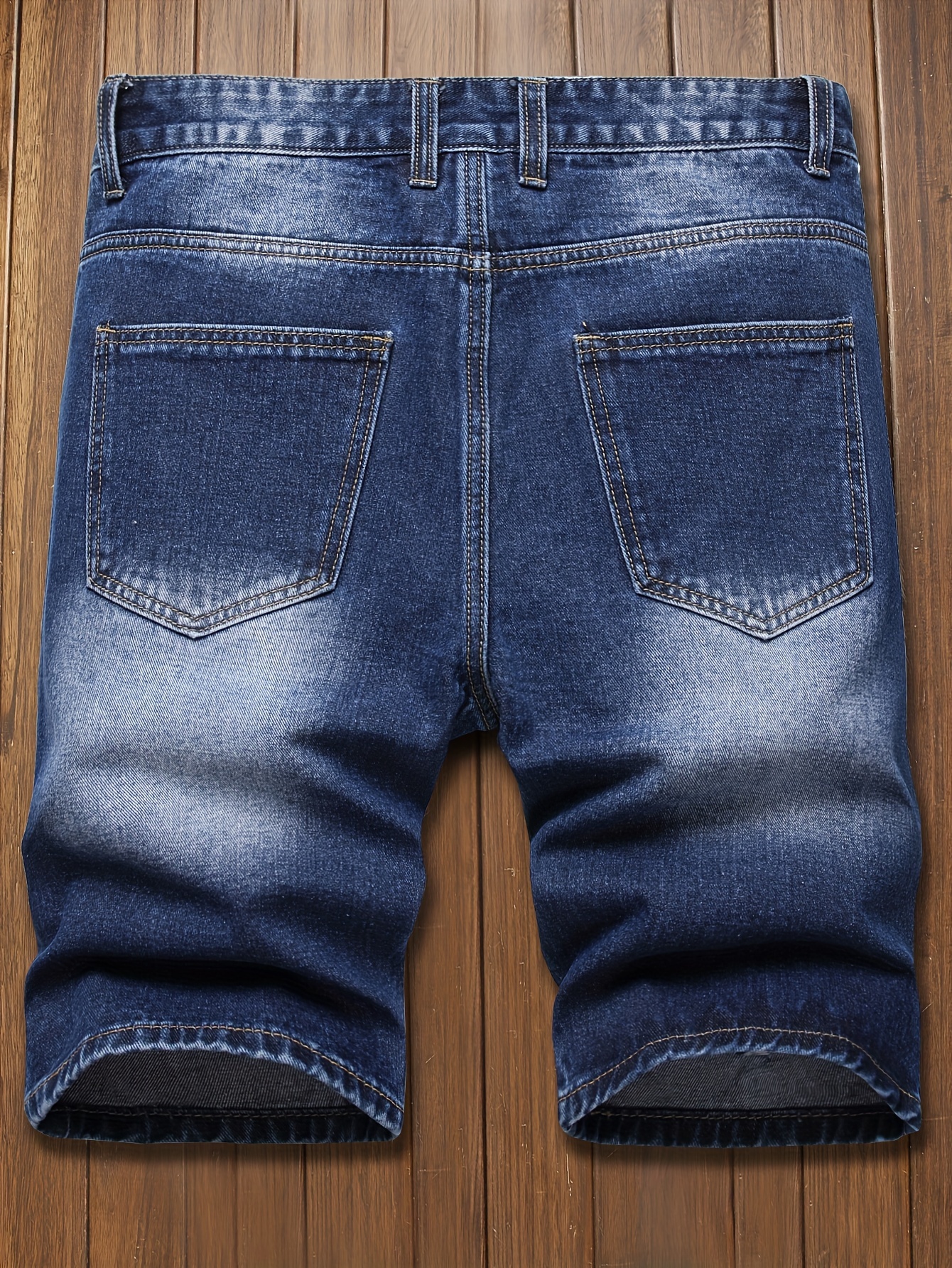 Men's Fashion Denim Shorts, Classic Fit, Knee Length, Zippered Pockets, Casual Summer Jeans, E911818-MW-E5 Style