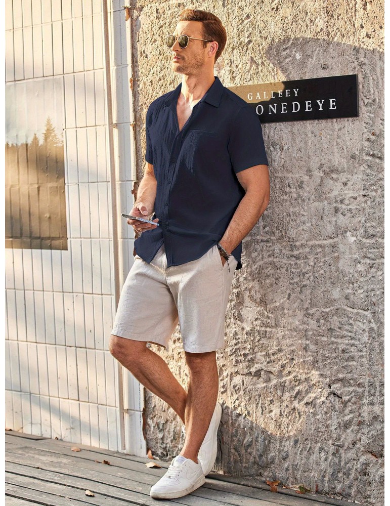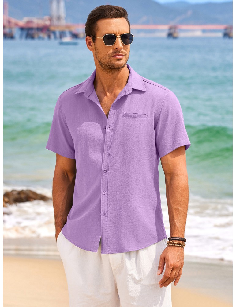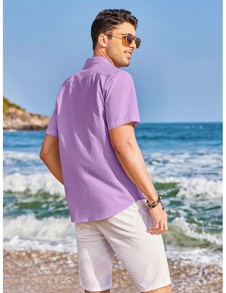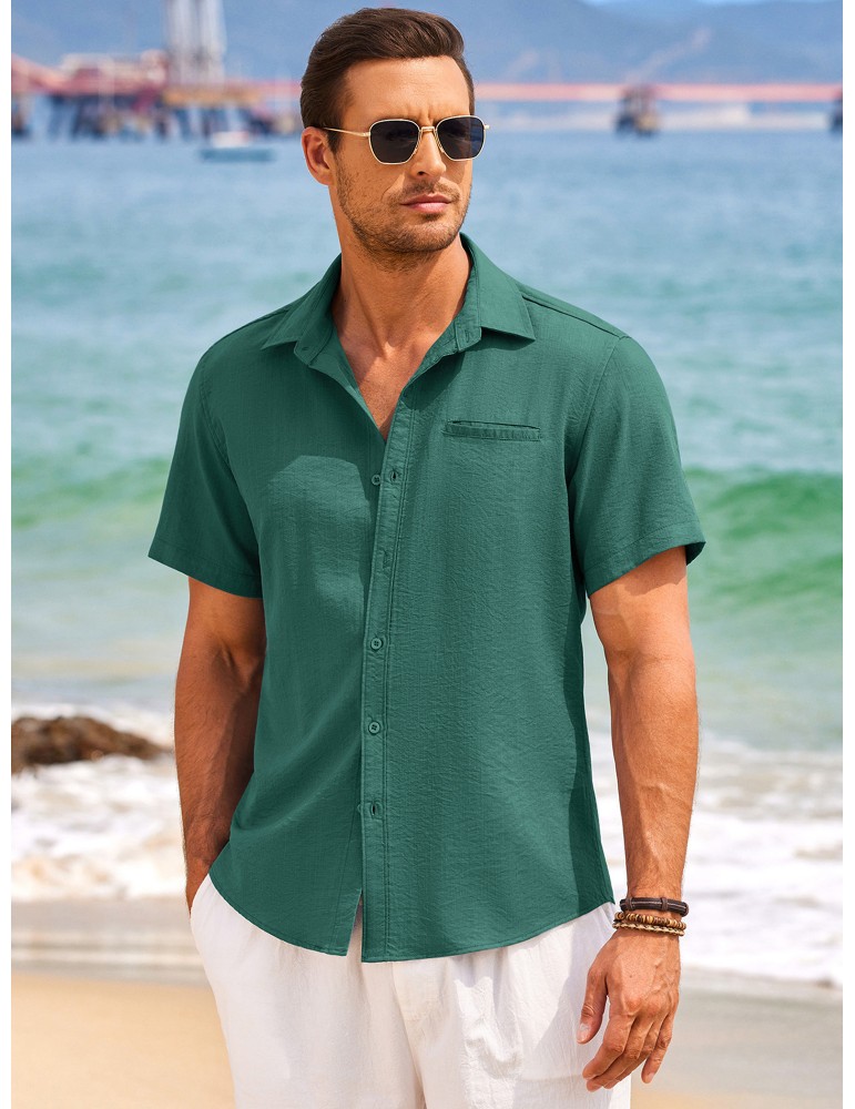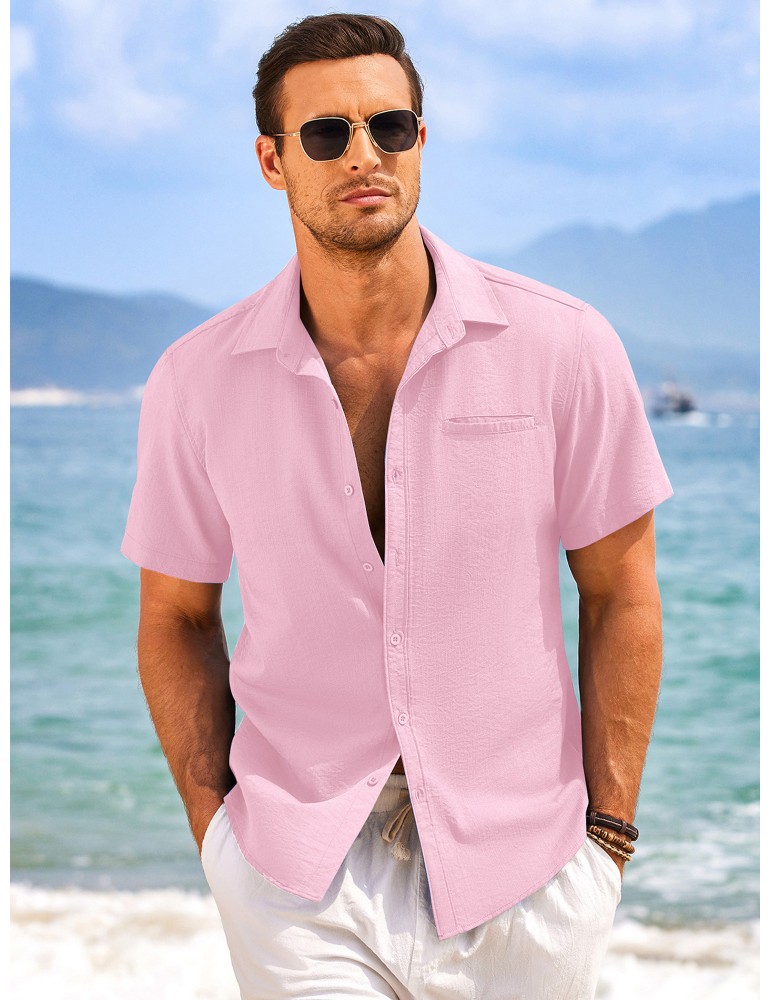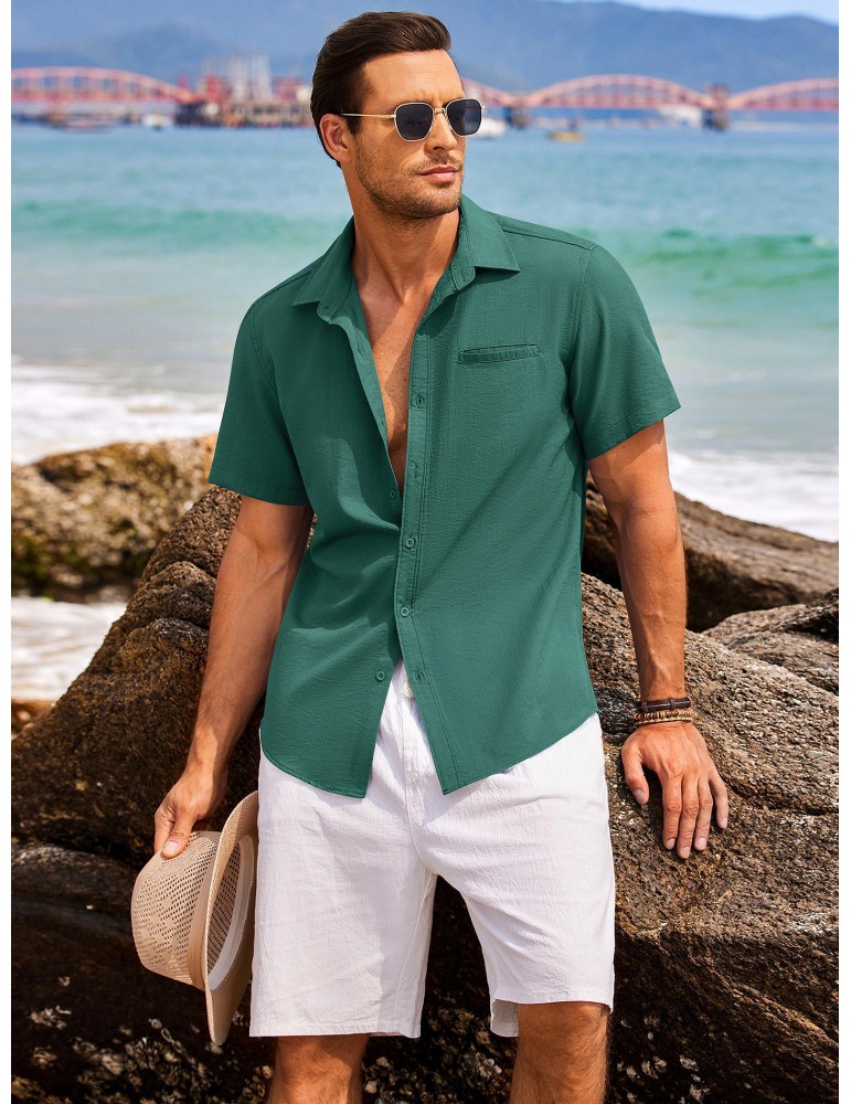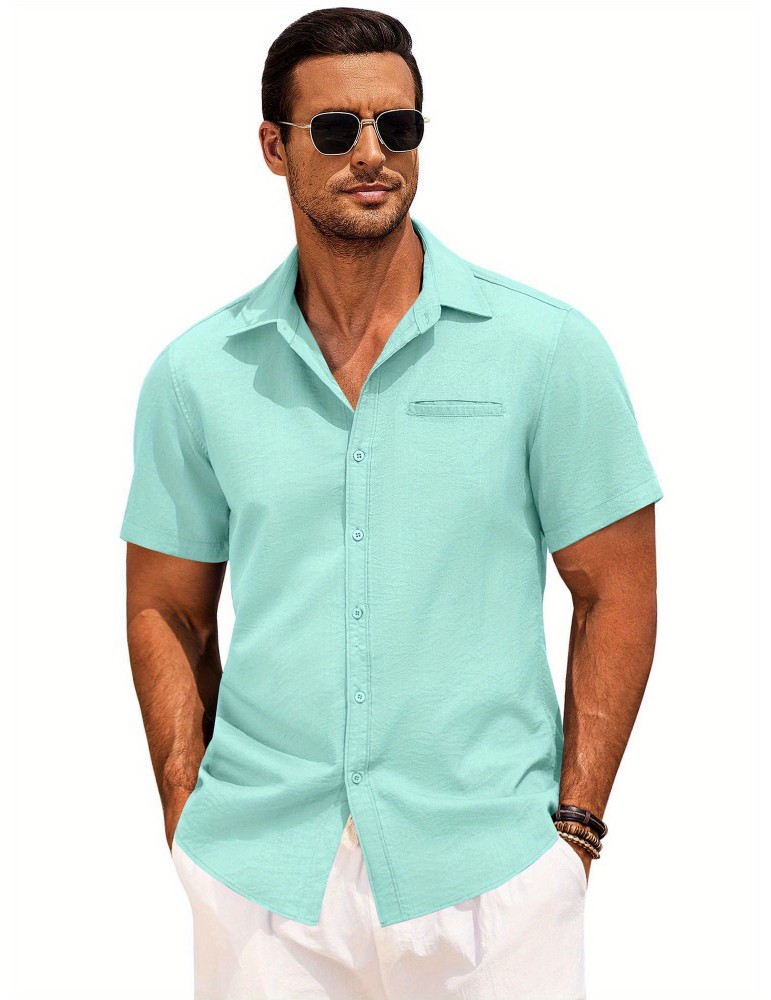 • 1pc Men'S Casual Linen Blend Short Sleeve Shirt - Summer Beach Button Down with Regular Fit, Solid Color, Basic Style, Suitable for All Seasons, Plus Size