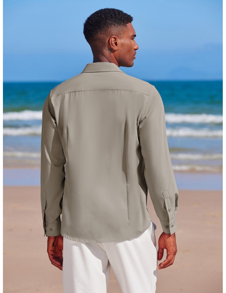 Men's Classic Long Sleeve Button-Down Shirt - Casual & Formal, Solid Color, Polyester, Perfect for Beach Weddings & Spring/Fall, PLUS SIZE Men's Classic Long Sleeve Button-Down Shirt - Casual & Formal, Solid Color, Polyester, Perfect for Beach Weddings & Spring/Fall, PLUS SIZE