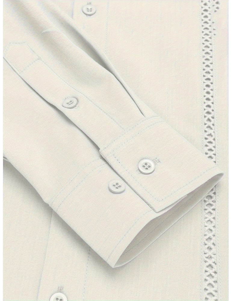 Men'S Cuban Guayabera Long Sleeve Shirt - Casual Woven Linen Beach Shirt, Regular Fit, Button Down, Non-Stretch Polyester Fabric, Solid Color, Appropriate for Adult Men, Spring/Fall Season Essentials, Plus Size