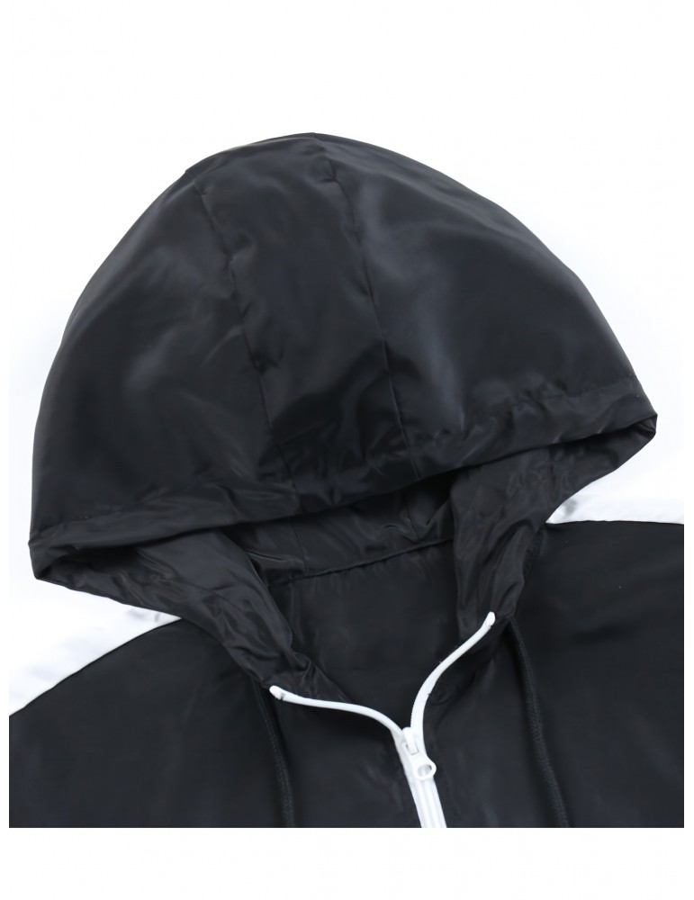 mens casual sport style windbreaker jacket color block hooded with drawstring elastic cuffs fashion outwear details 3