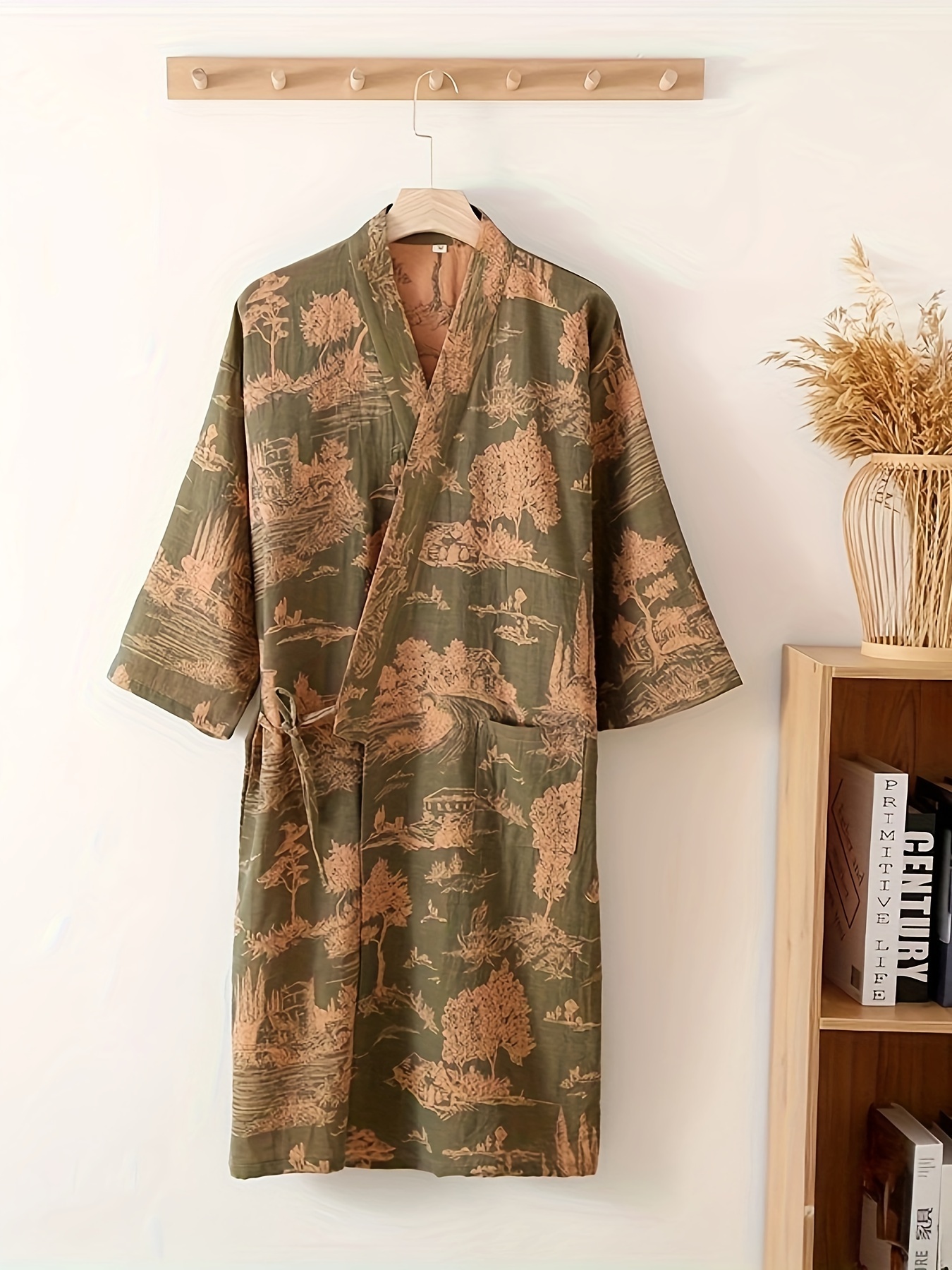 • Spring and Autumn men's kimono pajamas, pure cotton dyed jacquard bathrobes, all cotton long style sweat steaming hot spring clothes