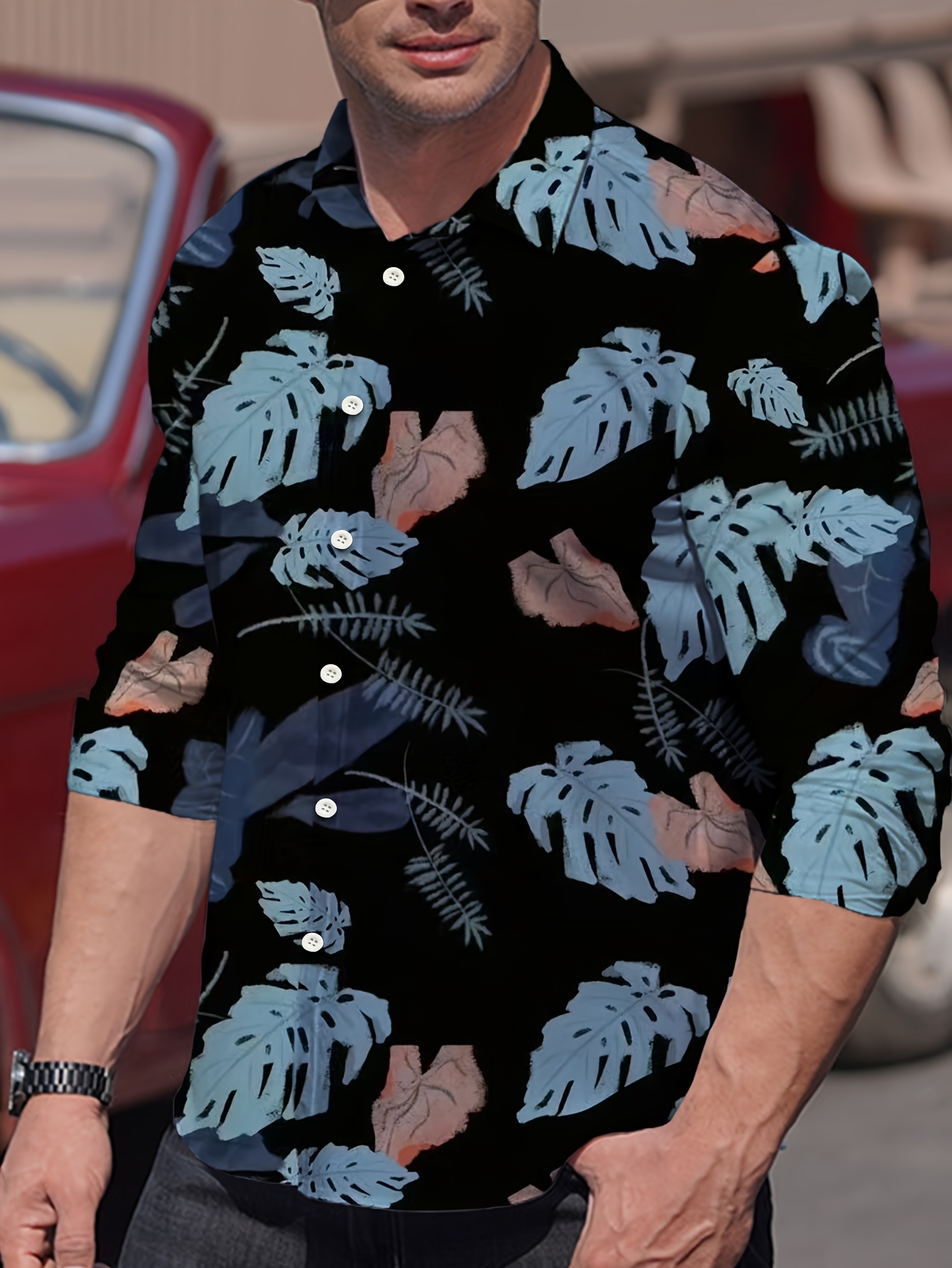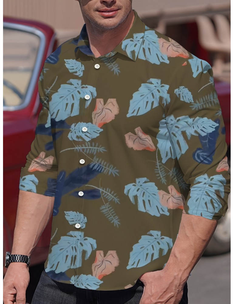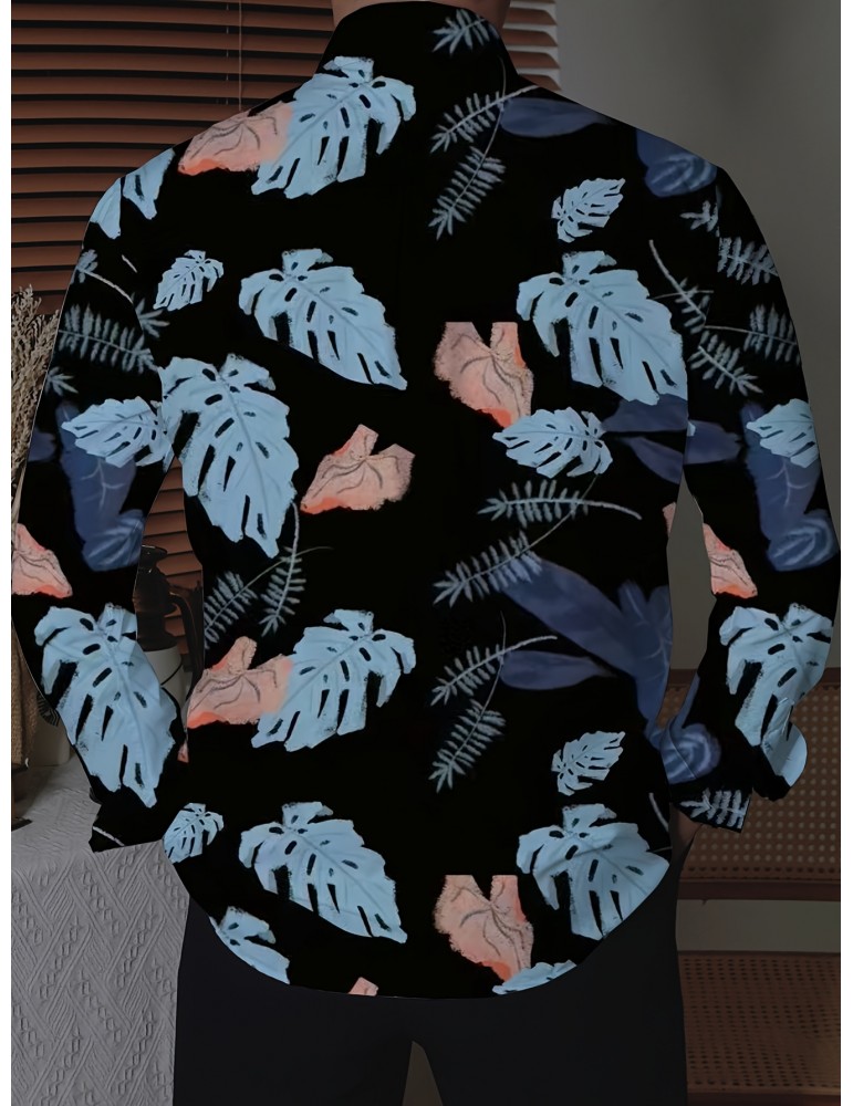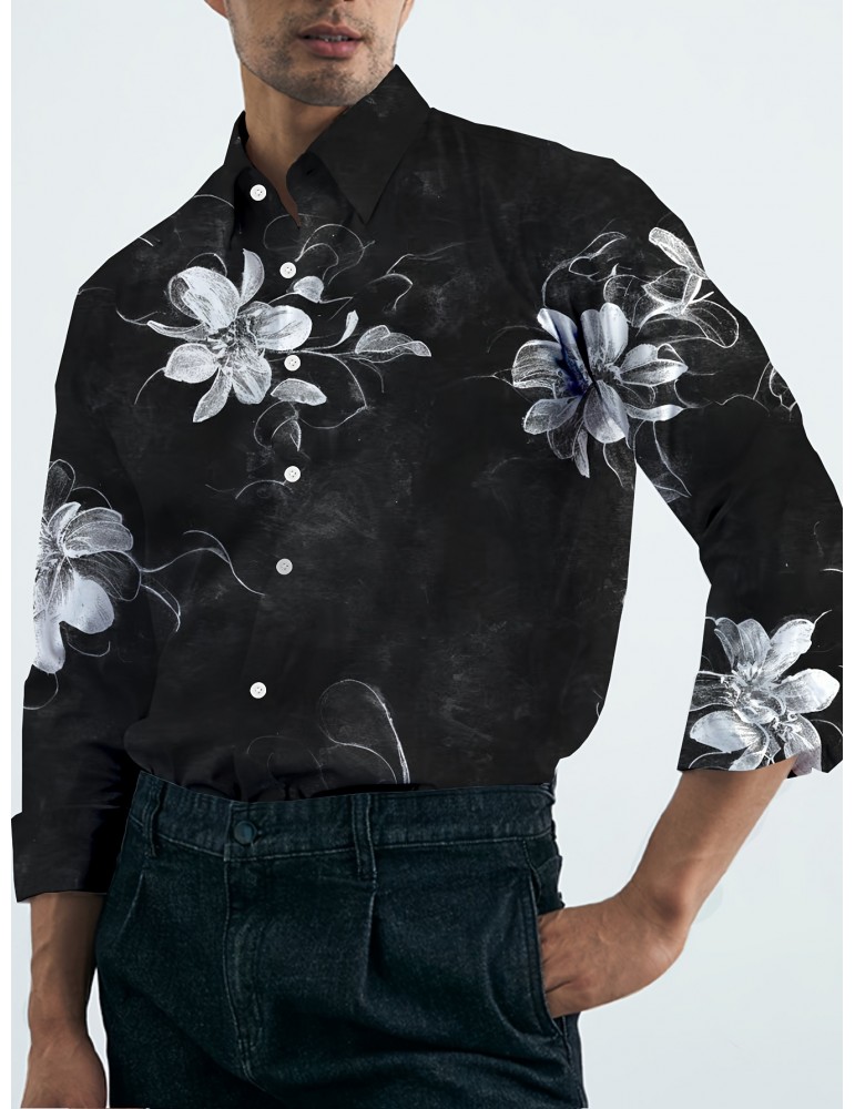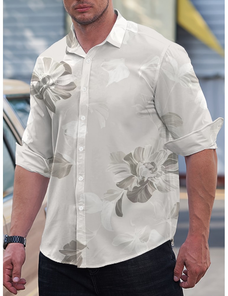 • Men's Plus Size Floral Print Shirt - Casual Long Sleeve, Button-Up with Turn-Down Collar, Polyester Blend, Non-Stretch Fabric for Spring/Fall, PLUS SIZE
