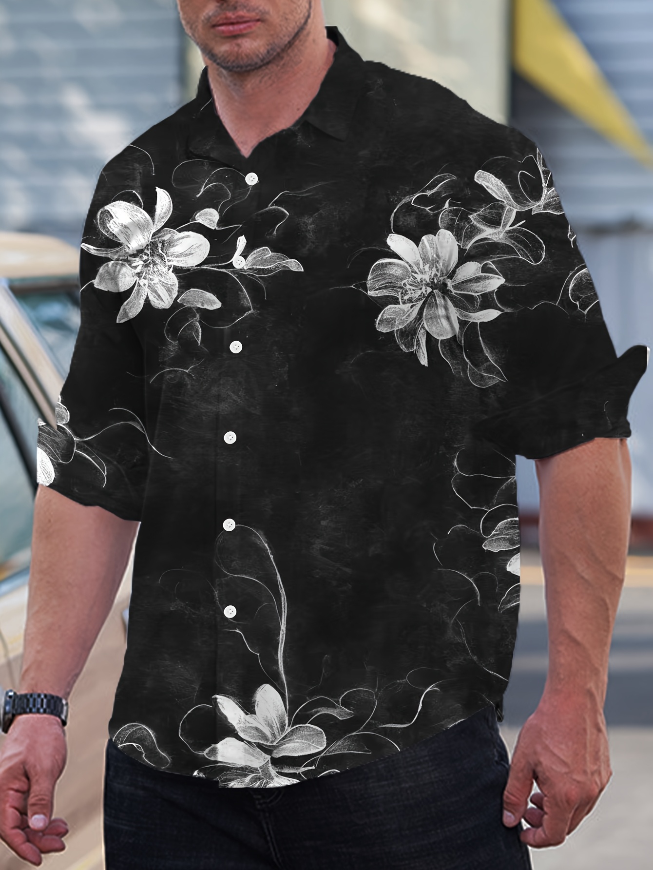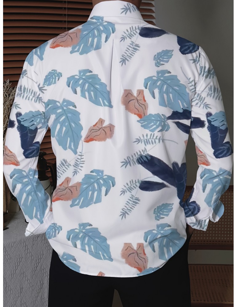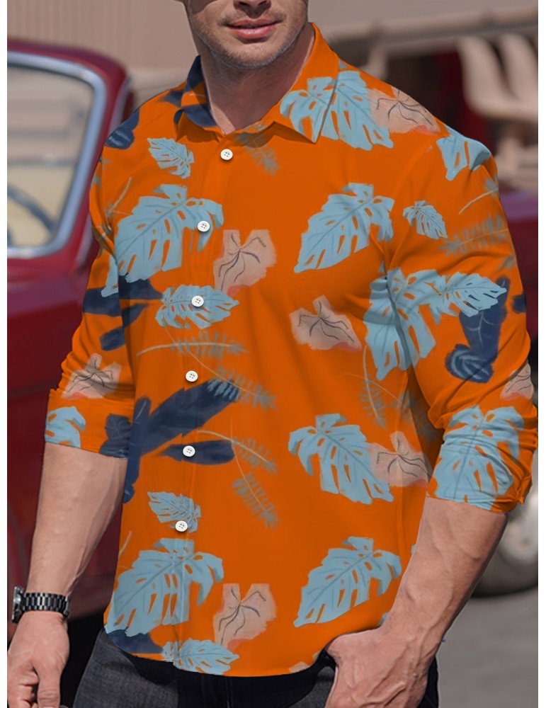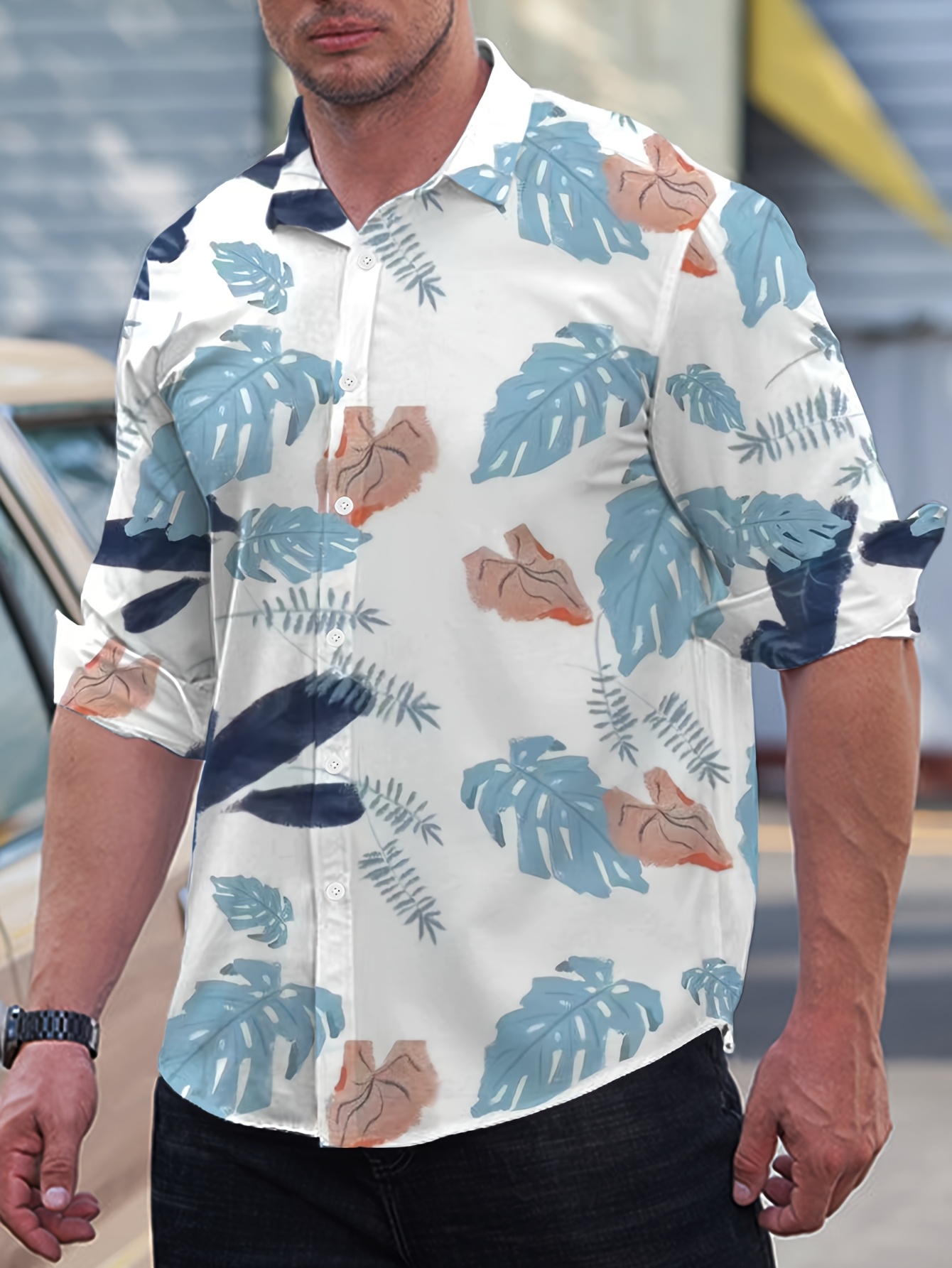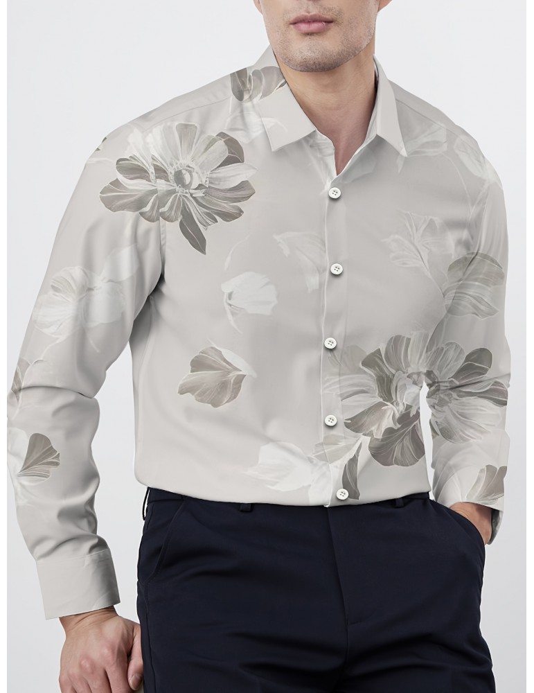 • Men's Plus Size Floral Print Shirt - Casual Long Sleeve, Button-Up with Turn-Down Collar, Polyester Blend, Non-Stretch Fabric for Spring/Fall, PLUS SIZE