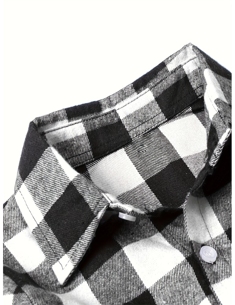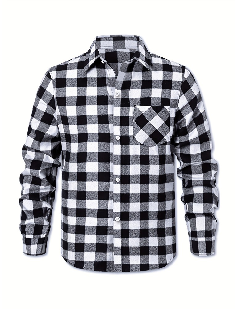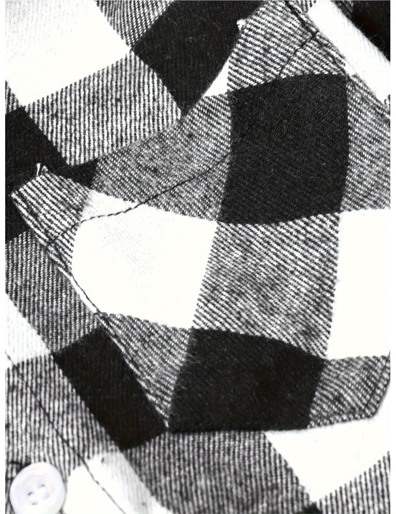 Men's Button Down Loose Fit Long Sleeve Thick Plaid Casual Shirt Jacket black and white checkerboard 02 Men's Button Down Loose Fit Long Sleeve Thick Plaid Casual Shirt Jacket black and white checkerboard 02