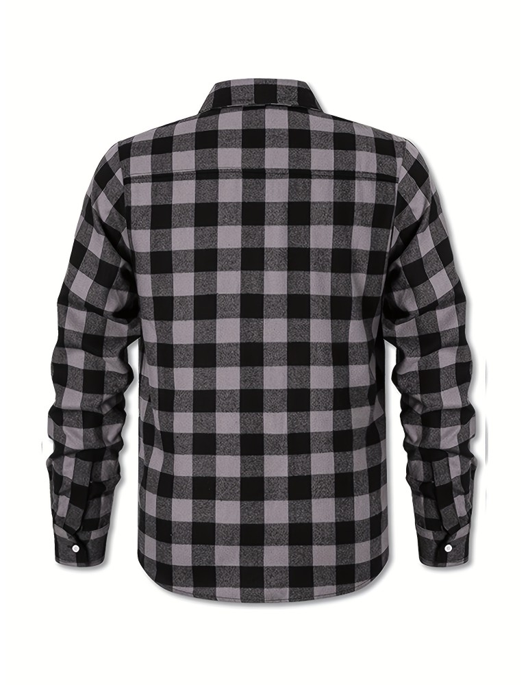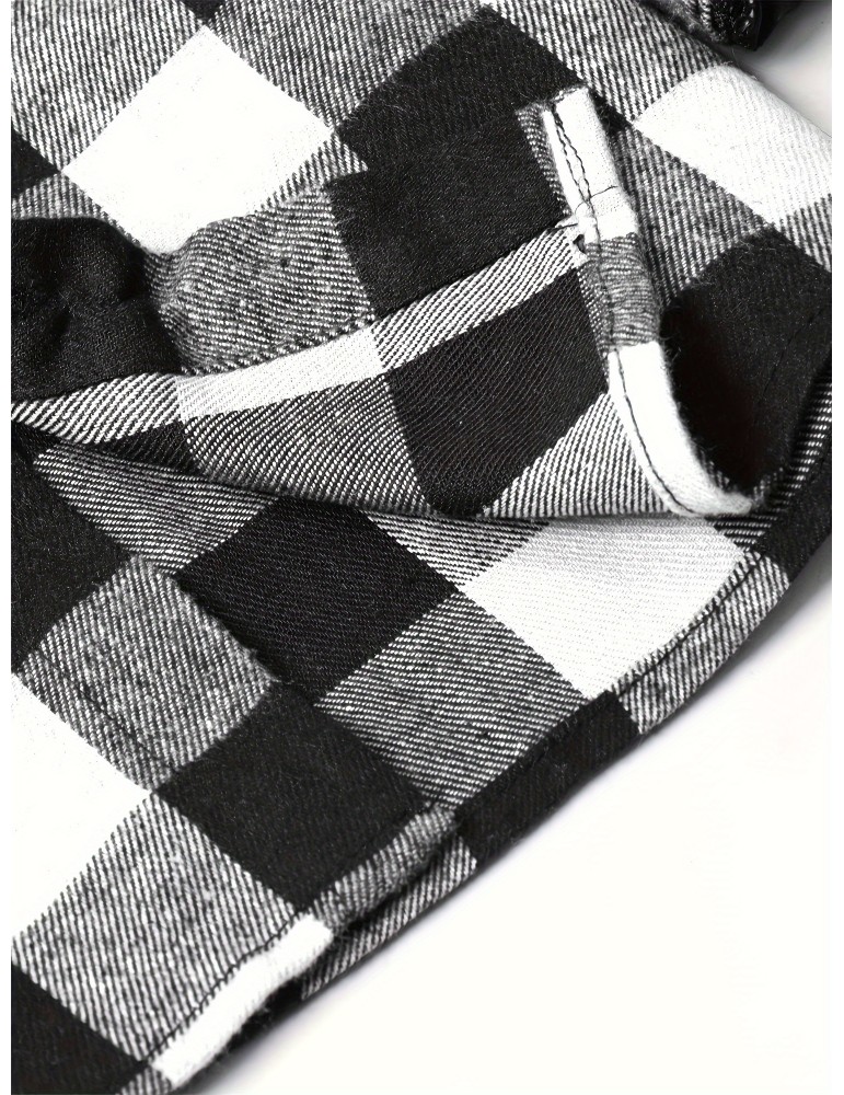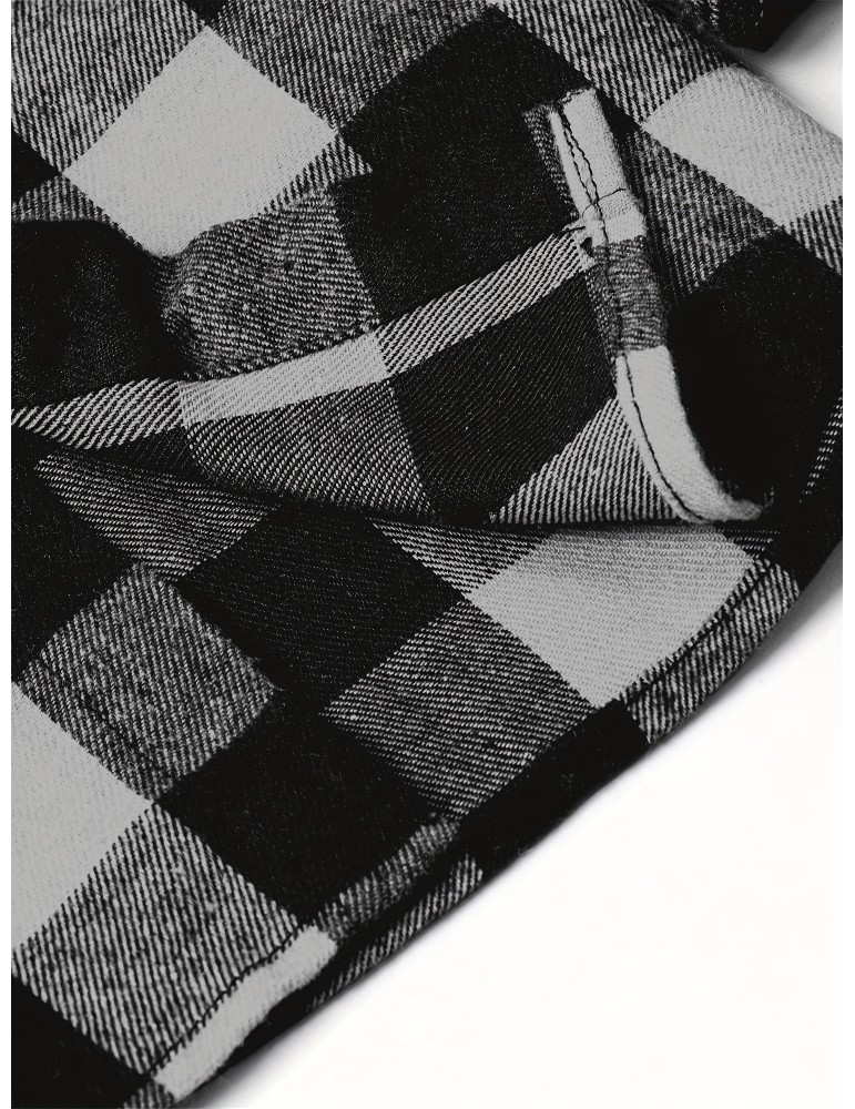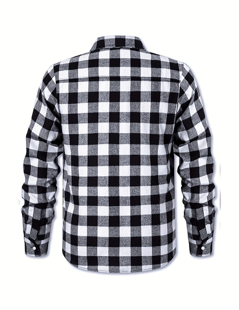Men's Button Down Loose Fit Long Sleeve Thick Plaid Casual Shirt Jacket black and white checkerboard 02