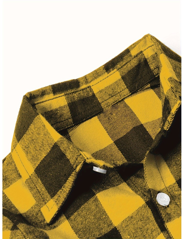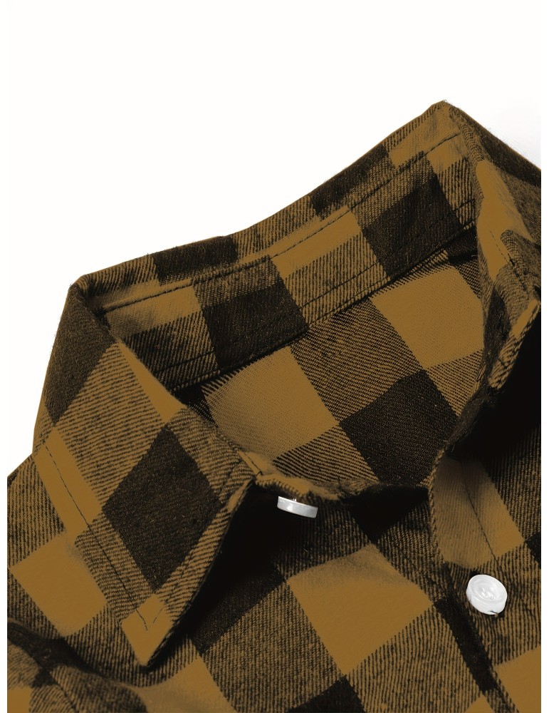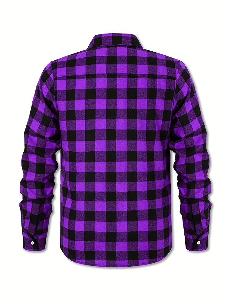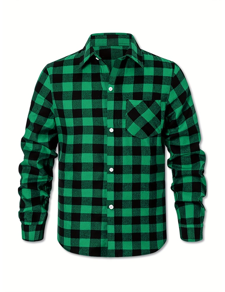 • Plus Size Men's Casual Long Sleeve Button Down Shirt Fashion Classic Buffalo Plaid Flannel Top