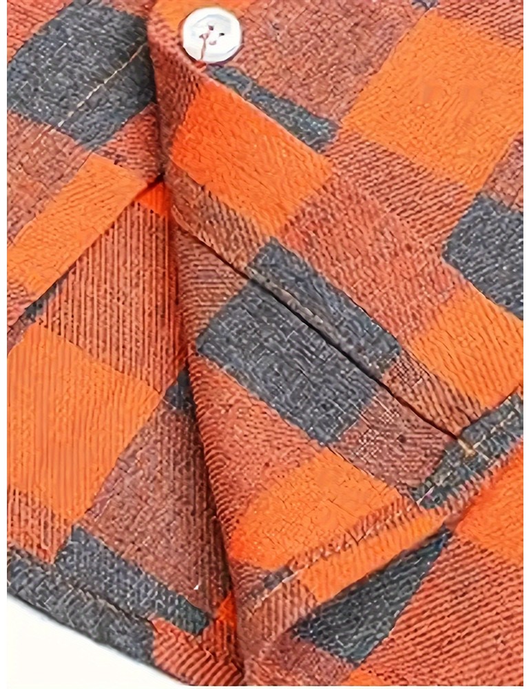 plus size mens casual long sleeve button down shirt     flannel top details 1