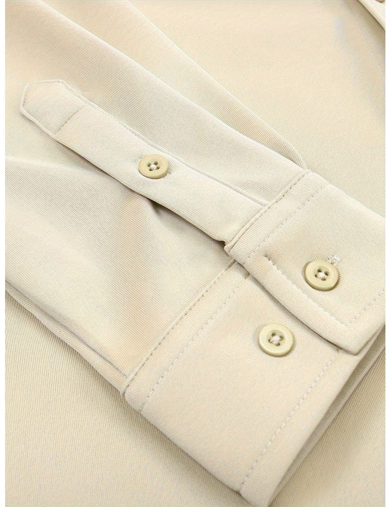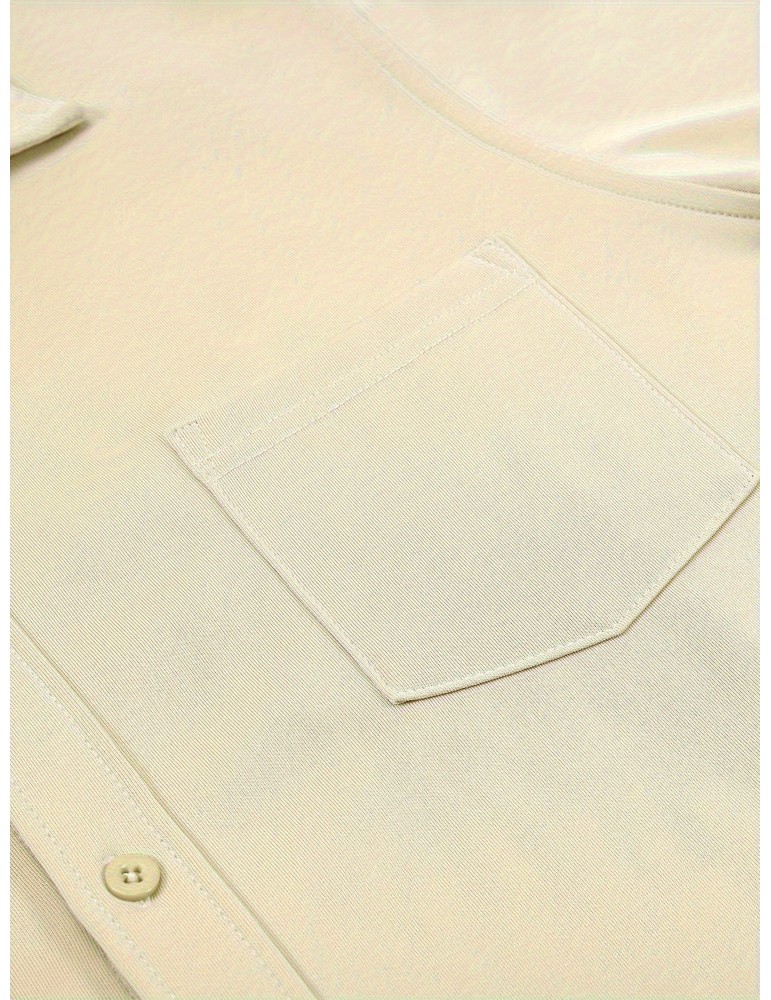 1pc Men'S Casual Long Sleeve Button-Down Shirt with Pocket - Wrinkle Free Polyester, Solid Color, Suitable for All Seasons, Plus Size 1pc Men'S Casual Long Sleeve Button-Down Shirt with Pocket - Wrinkle Free Polyester, Solid Color, Suitable for All Seasons, Plus Size