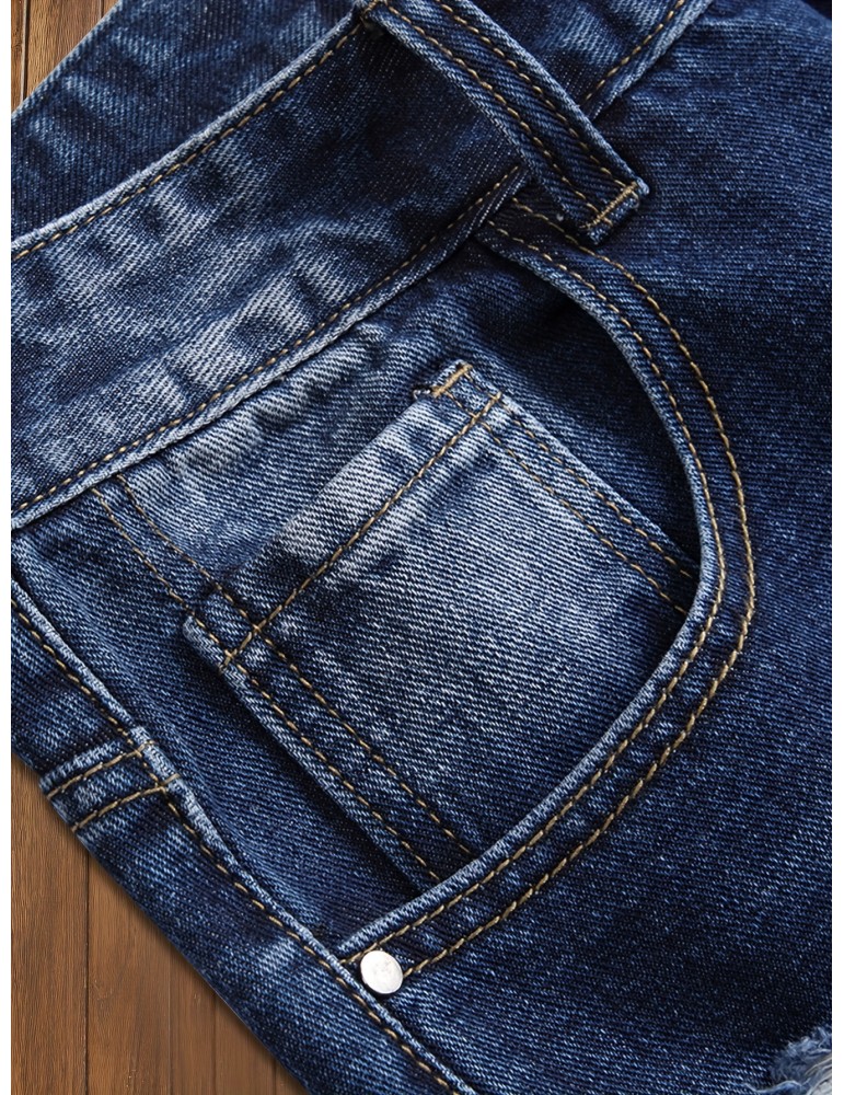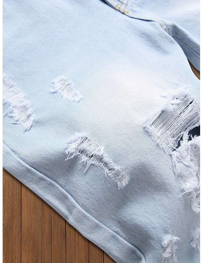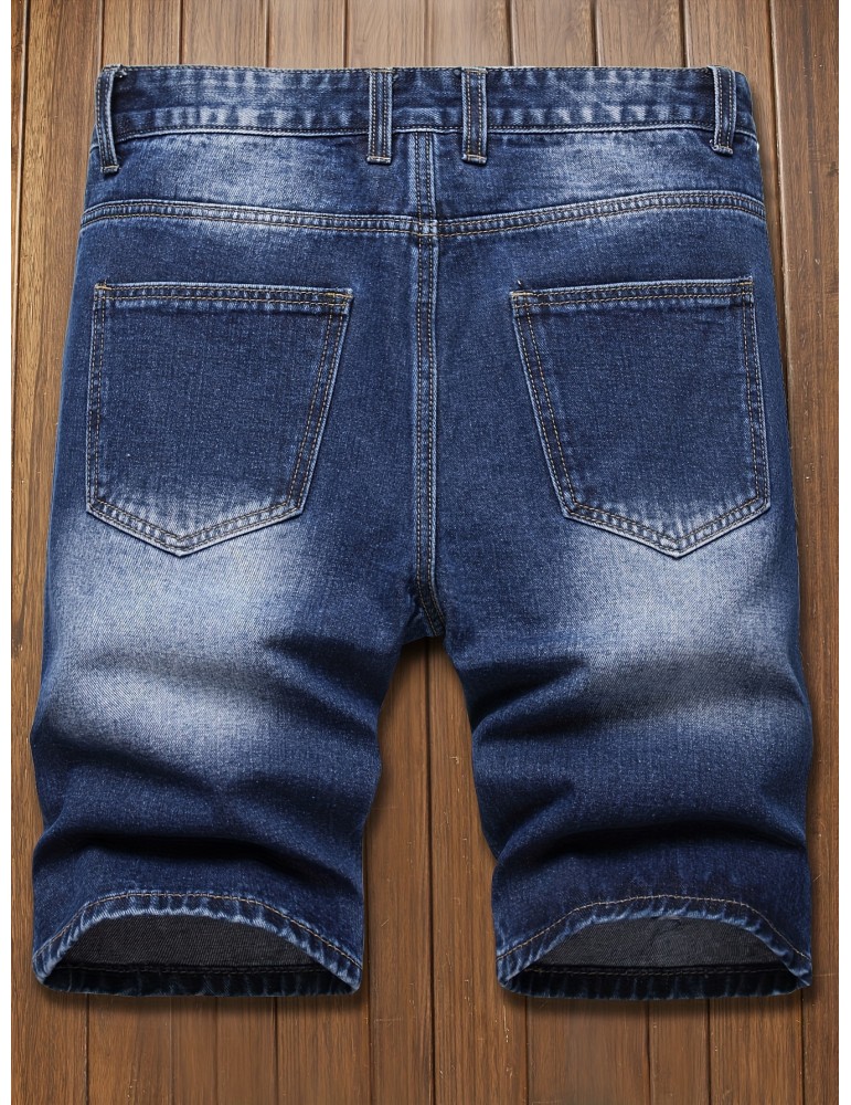 • Trendy, Men's Slim-Fit Ripped Denim Shorts - Street Style, Cotton Blend, Machine Washable