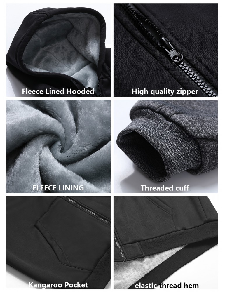 • Winter Men's Fleece Hoodies Full Zip Up Coat Hooed Sweatshirt Warm Thick Coats Kangaroo Pockets