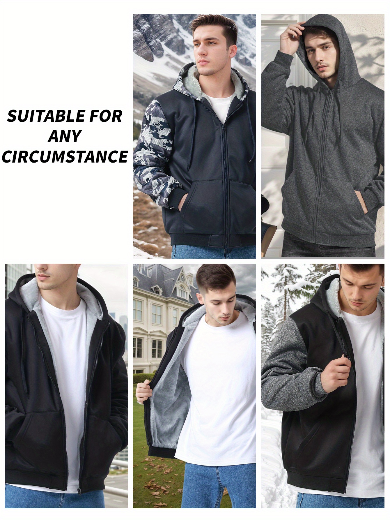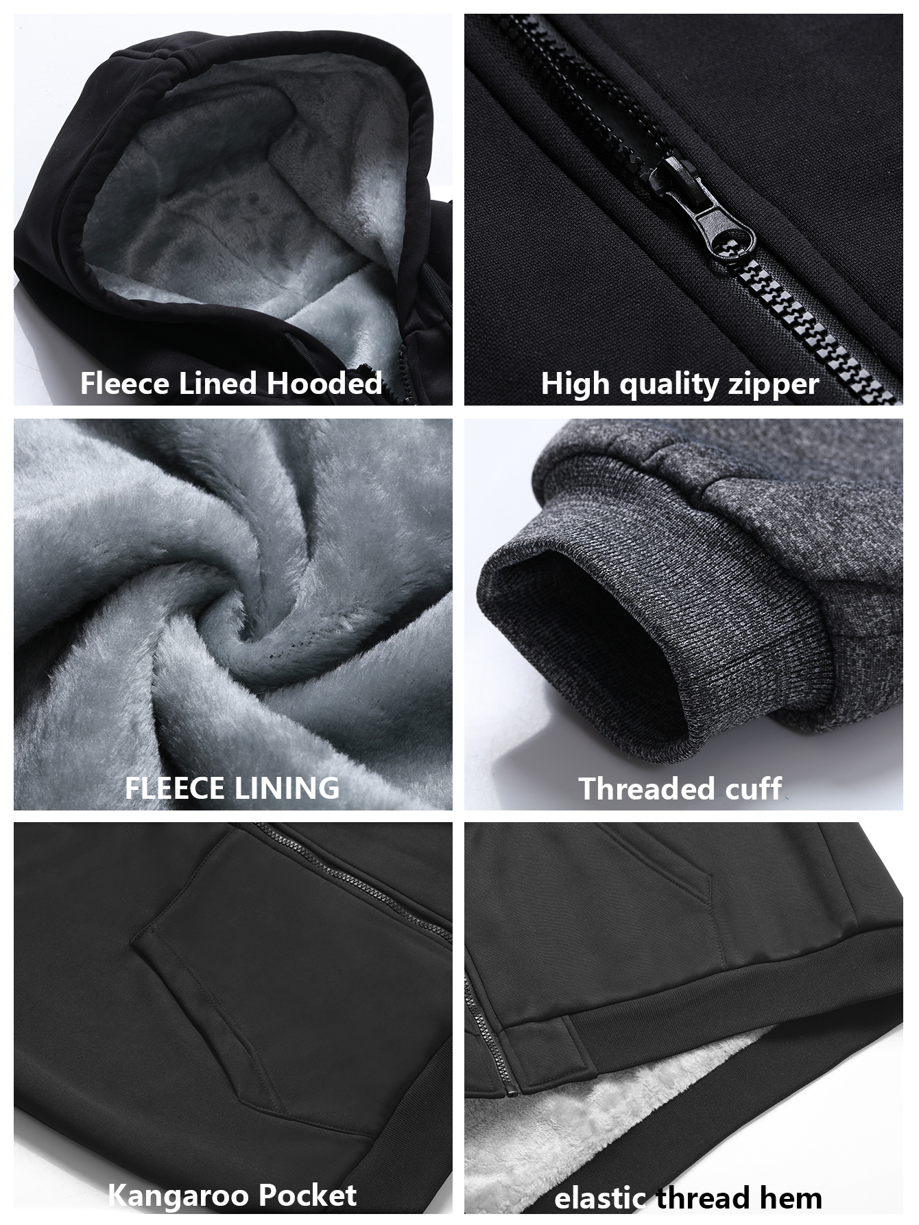 winter mens fleece hoodies full zip up coat hooed sweatshirt warm   coats kangaroo pockets details 6