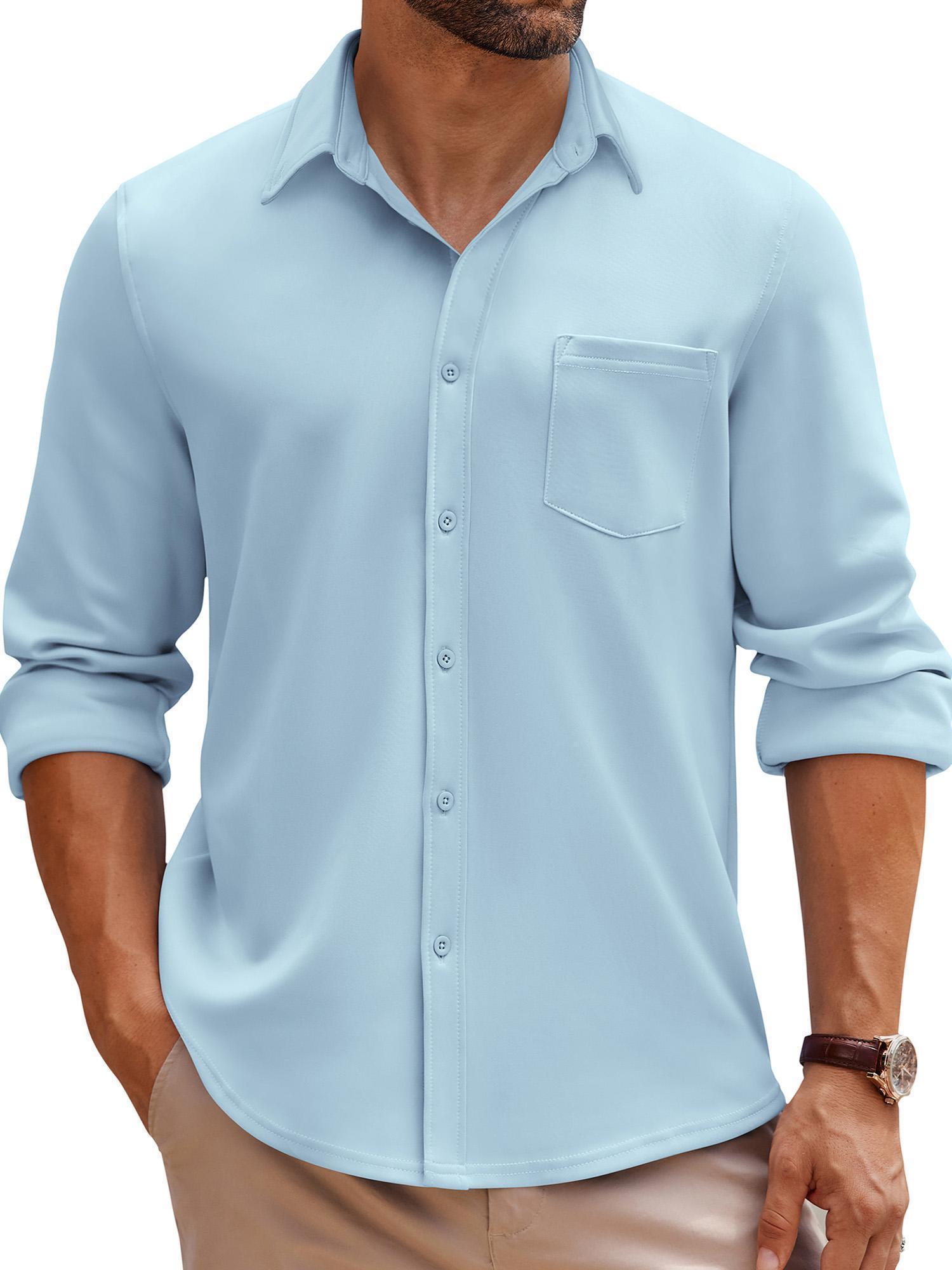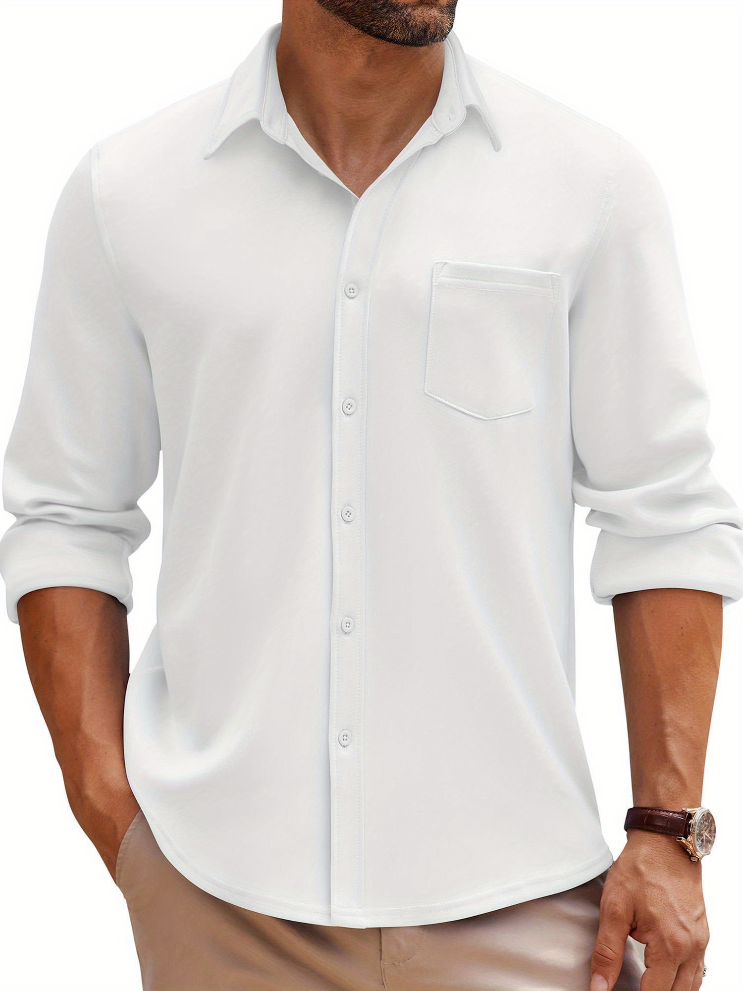 • 1pc Men'S Casual Long Sleeve Button-Down Shirt with Pocket - Wrinkle Free Polyester, Solid Color, Suitable for All Seasons, Plus Size