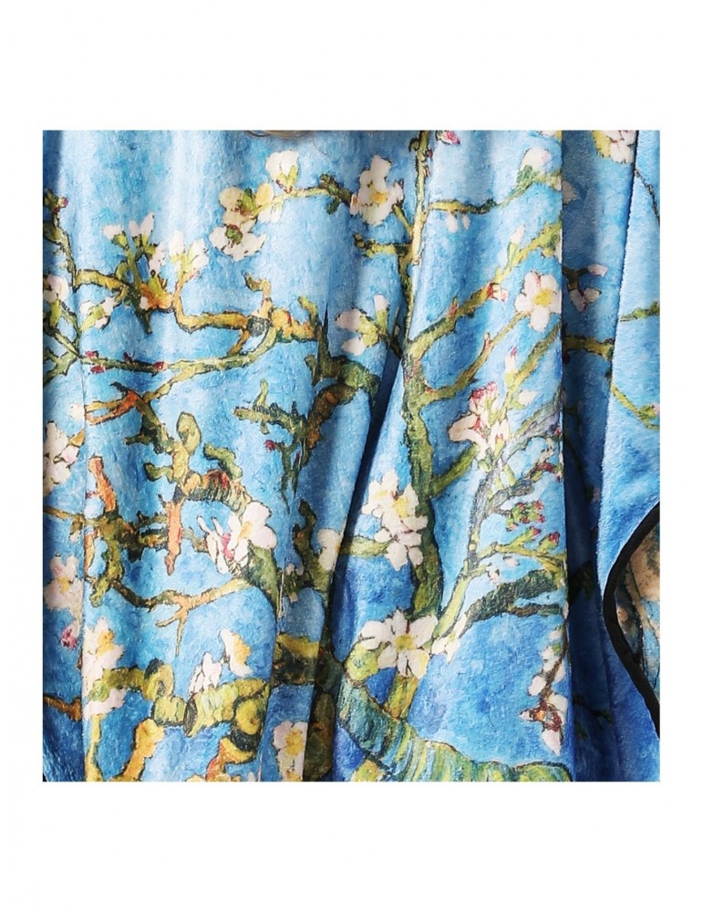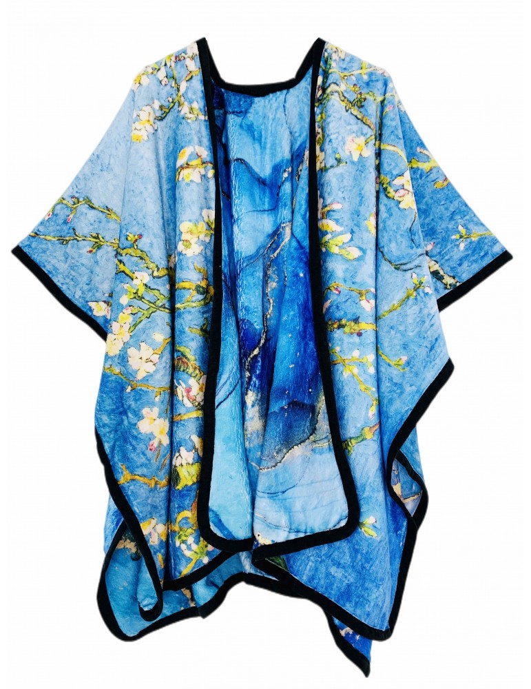 blue multi van gogh cherry   marble cozy reversible fleece double sided wearable throw   sided with two prints open front poncho reversible luxury super soft   fur cape shawl blanket throw details 0