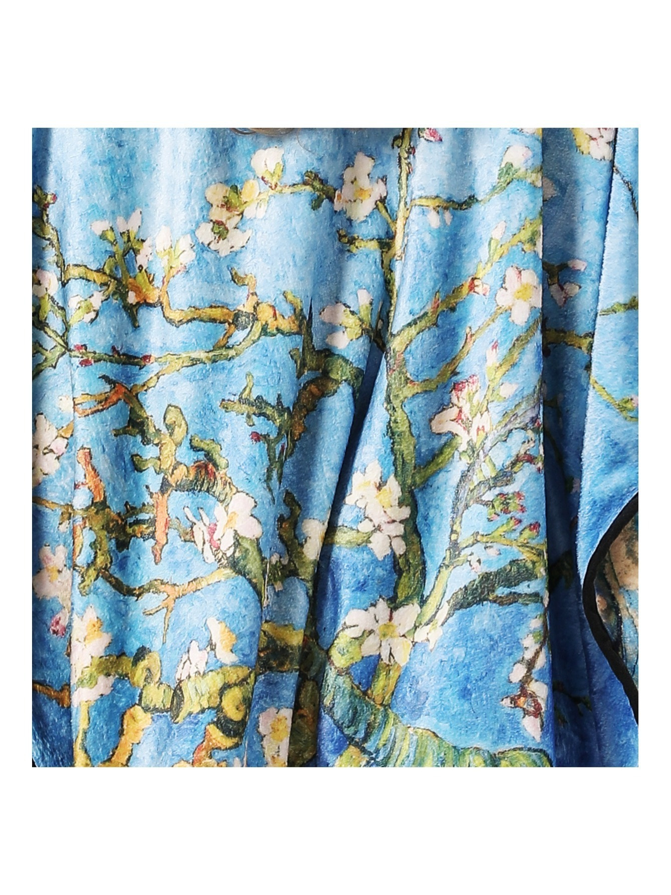 blue multi van gogh cherry   marble cozy reversible fleece double sided wearable throw   sided with two prints open front poncho reversible luxury super soft   fur cape shawl blanket throw details 1
