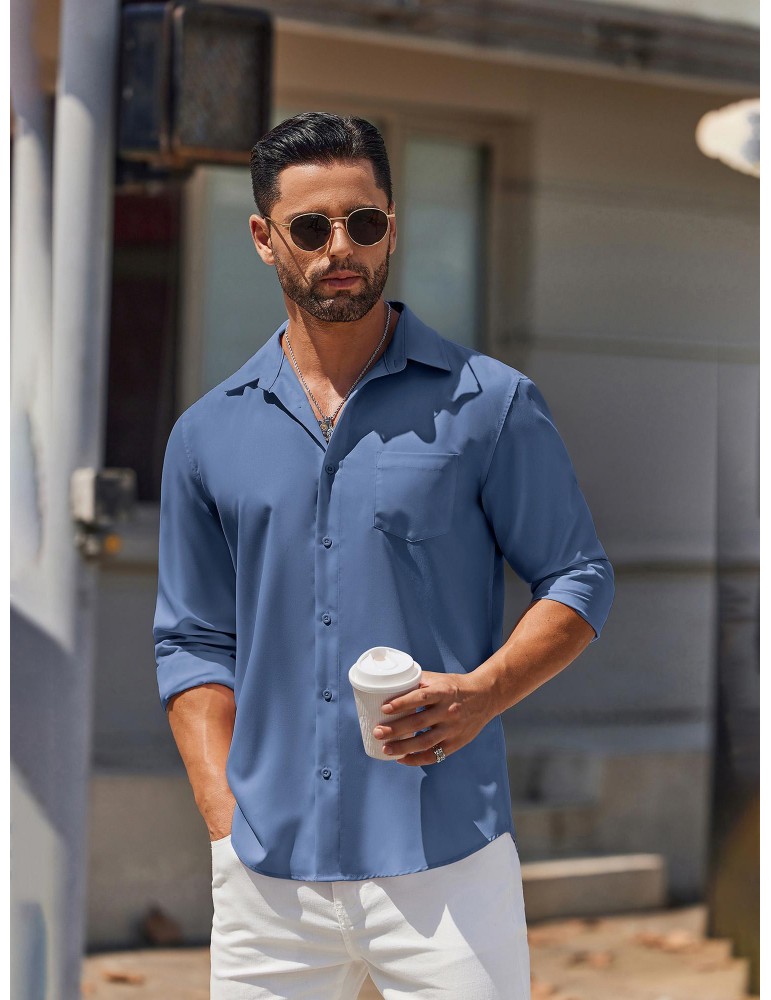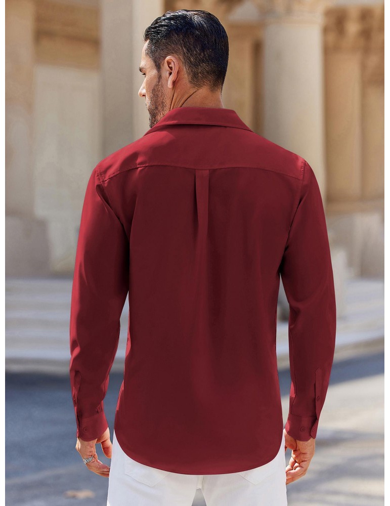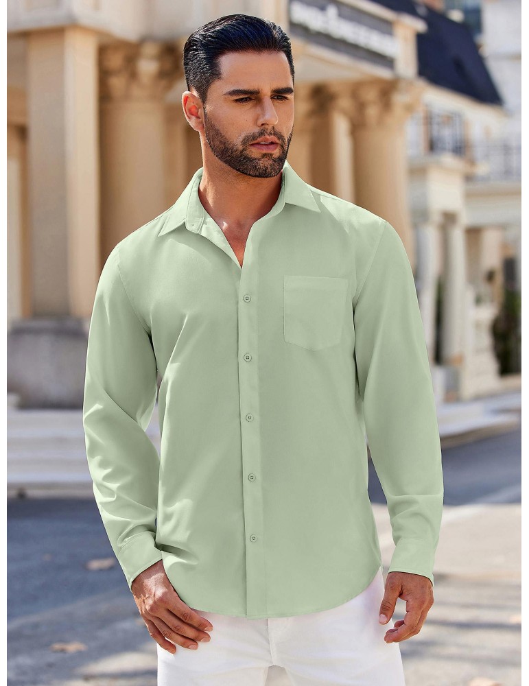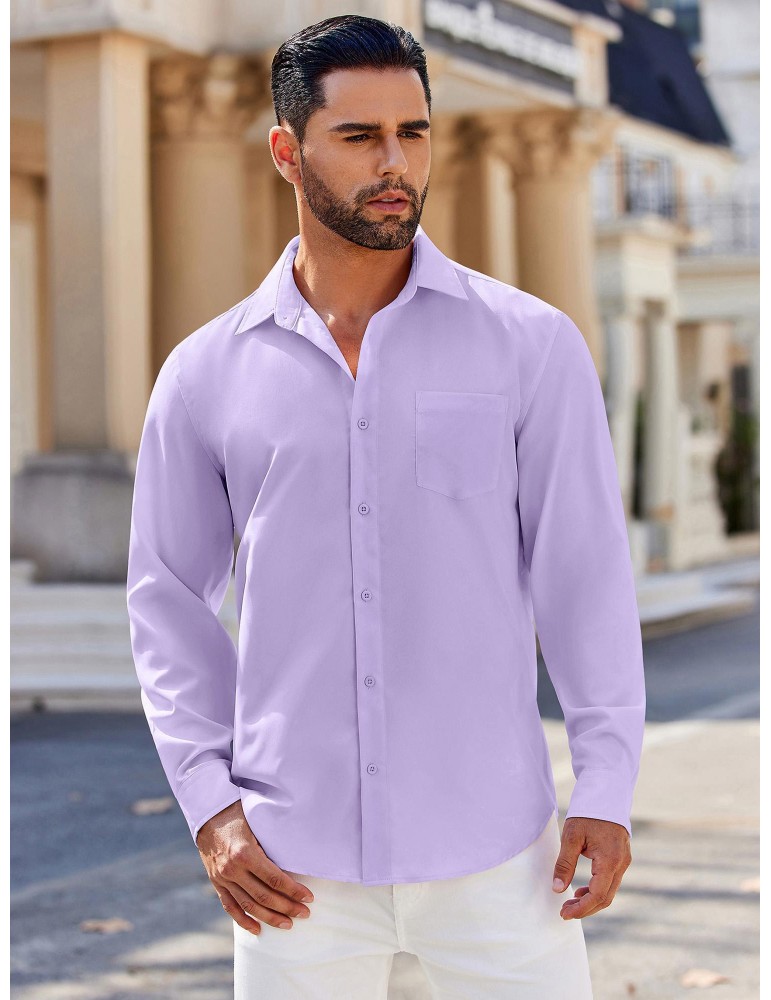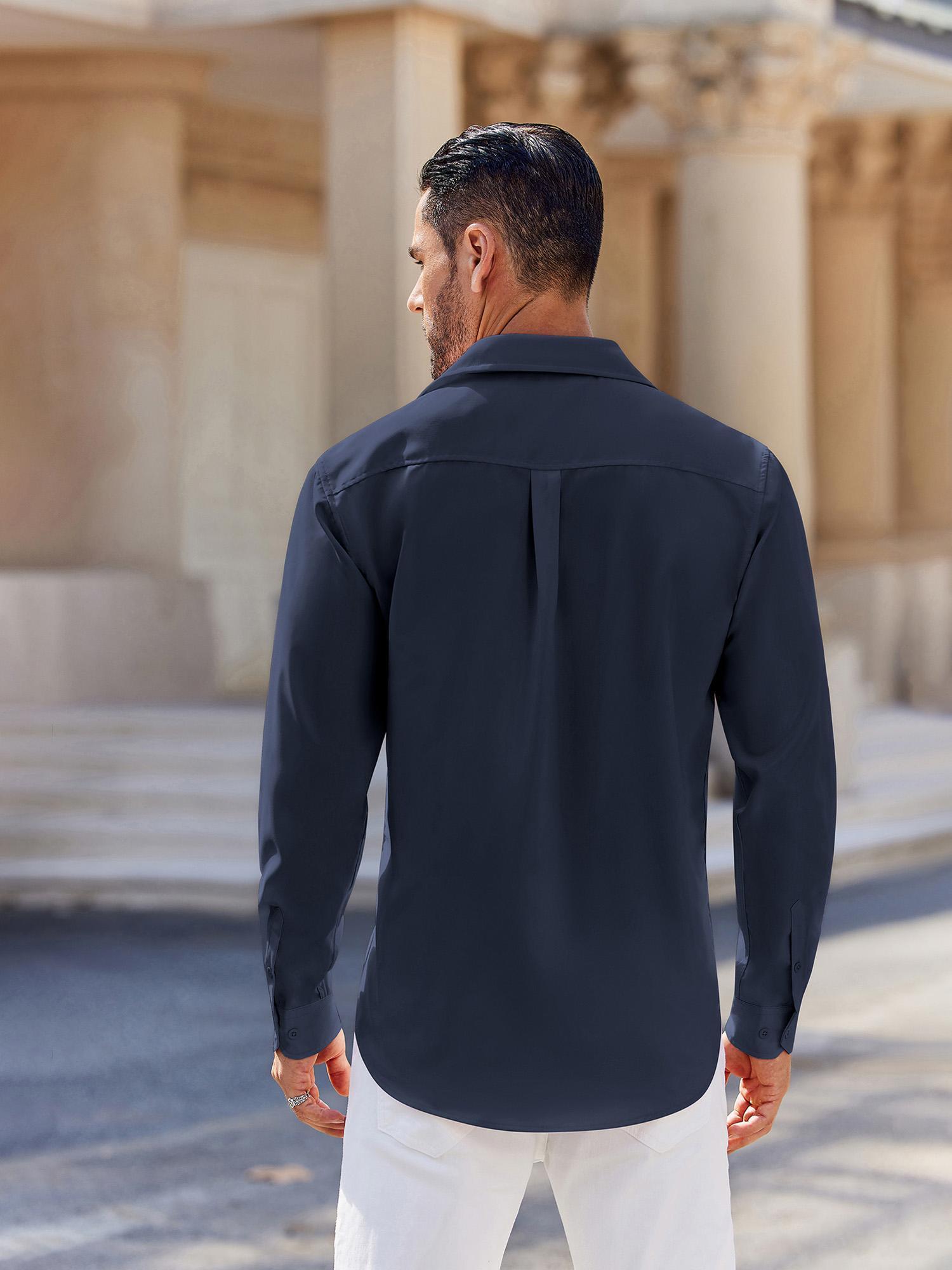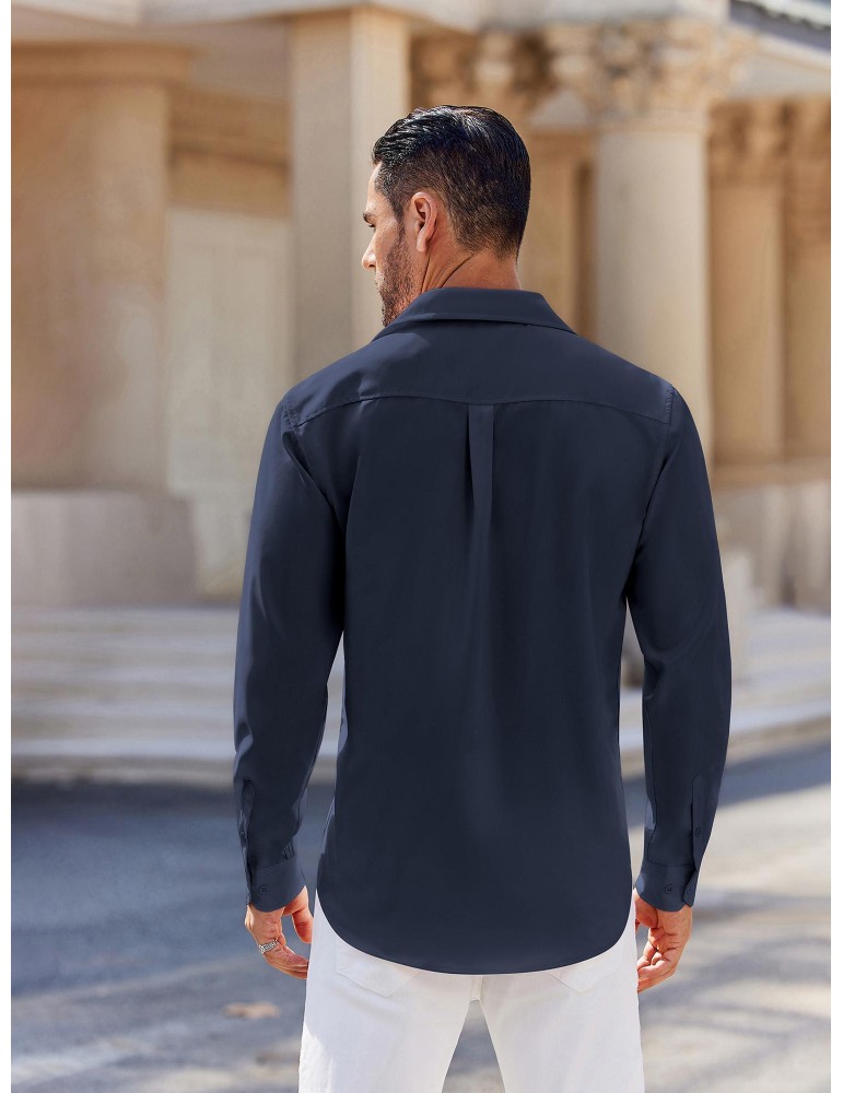 Men's Stretch Wrinkle-Free Long Sleeve Casual Button Down Shirts Muscle Fit Dress Shirts