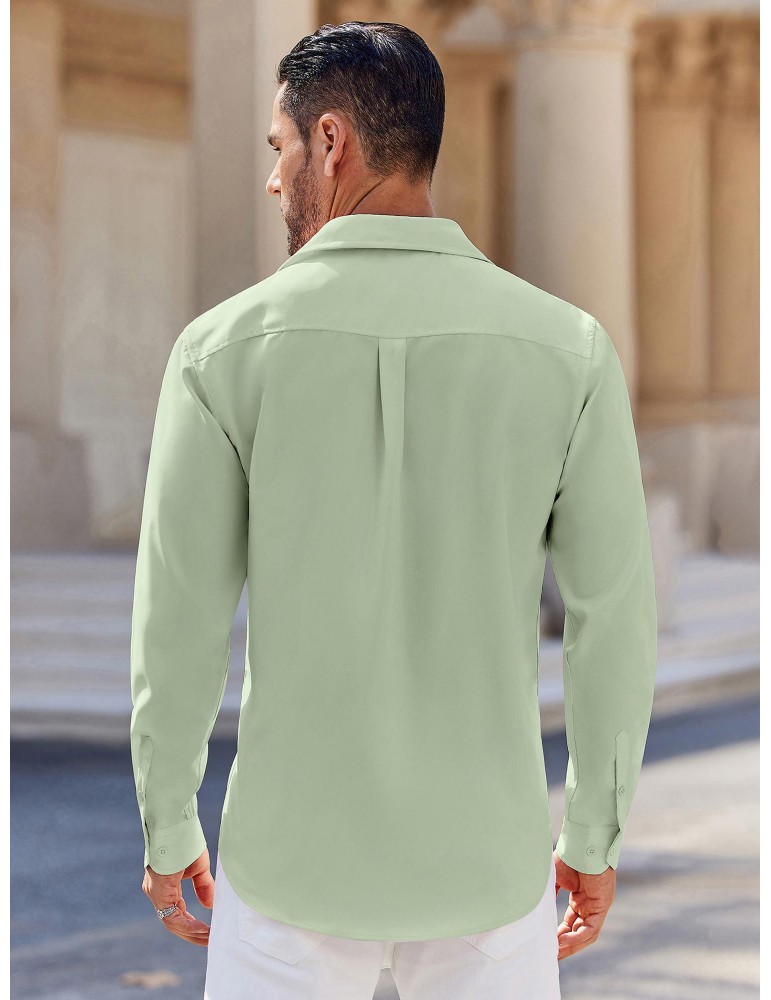 Men'S Cuban Guayabera Long Sleeve Shirt - Casual Woven Linen Beach Shirt, Regular Fit, Button Down, Non-Stretch Polyester Fabric, Solid Color, Appropriate for Adult Men, Spring/Fall Season Essentials, Plus Size