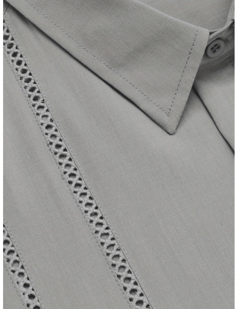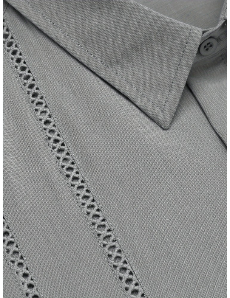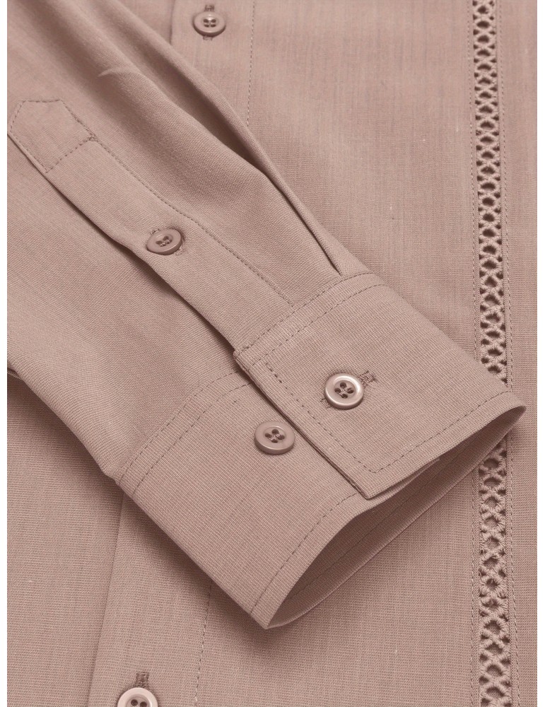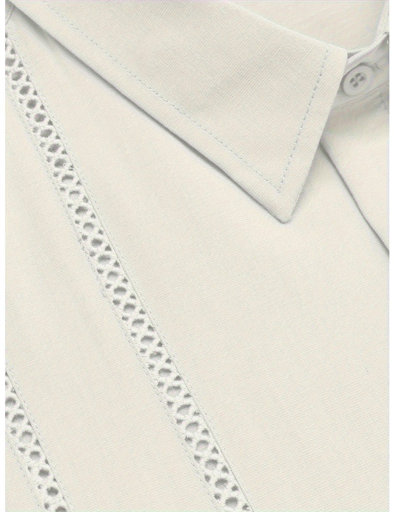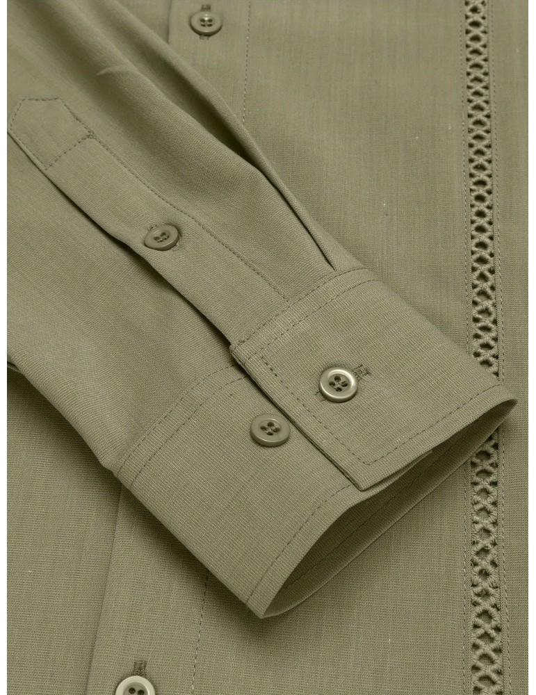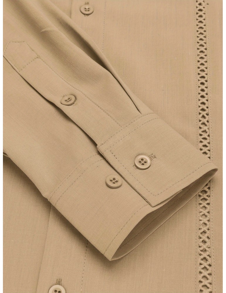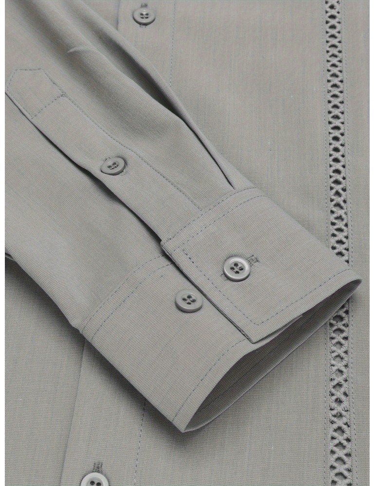 • Men'S Cuban Guayabera Long Sleeve Shirt - Casual Woven Linen Beach Shirt, Regular Fit, Button Down, Non-Stretch Polyester Fabric, Solid Color, Appropriate for Adult Men, Spring/Fall Season Essentials, Plus Size