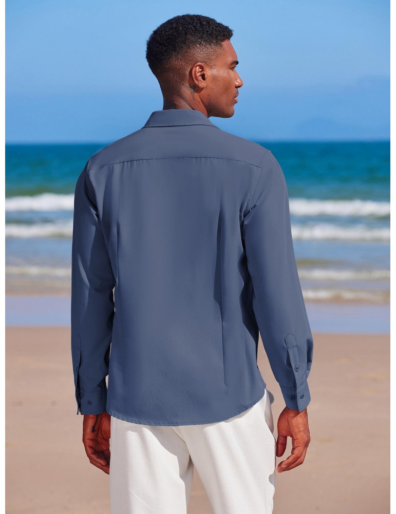 Men's Classic Long Sleeve Button-Down Shirt - Casual & Formal, Solid Color, Polyester, Perfect for Beach Weddings & Spring/Fall, PLUS SIZE Men's Classic Long Sleeve Button-Down Shirt - Casual & Formal, Solid Color, Polyester, Perfect for Beach Weddings & Spring/Fall, PLUS SIZE