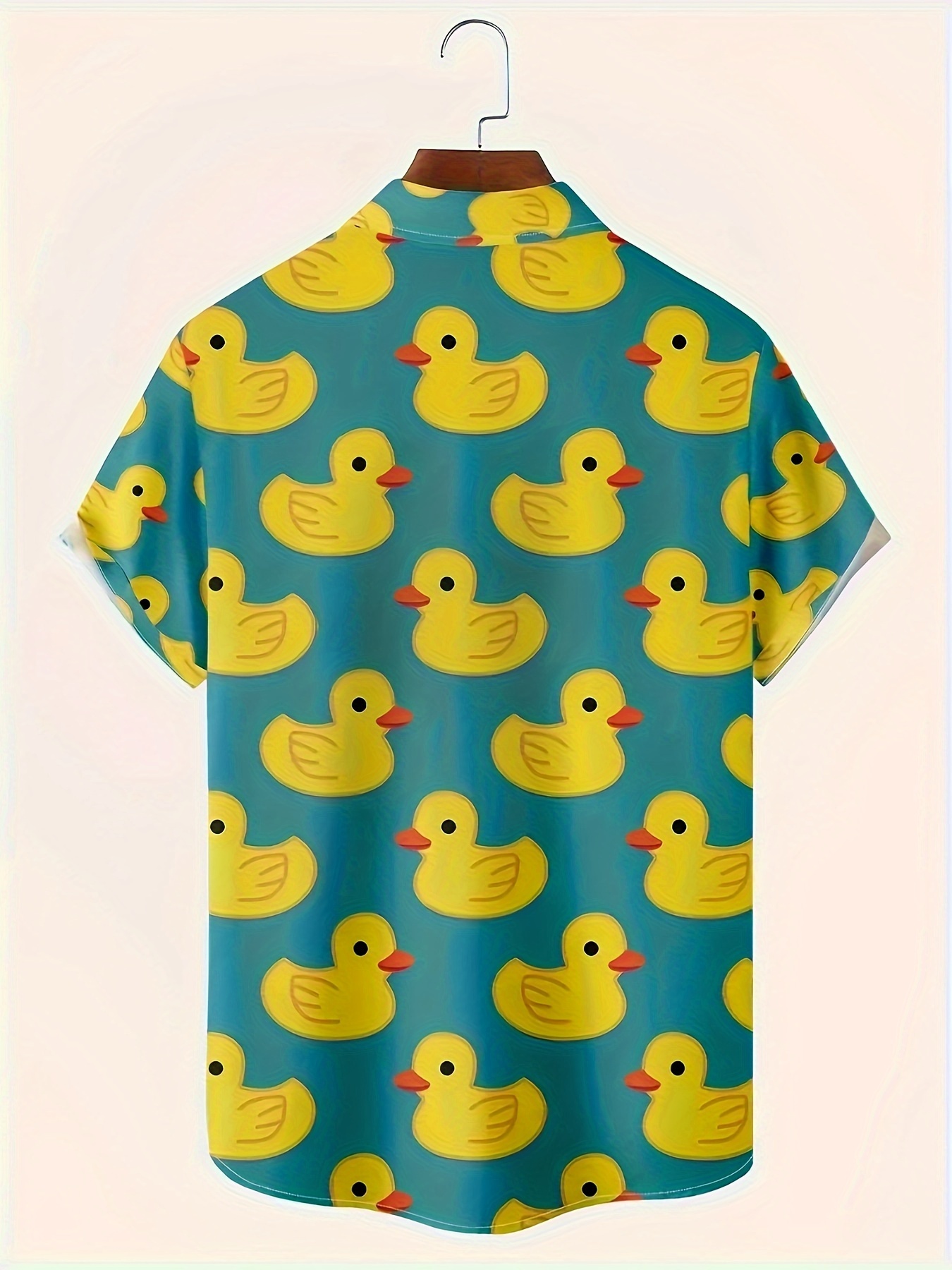 • Men's Hawaiian Resort Casual Shirt, Plus Size Men's Yellow Ducks Print Lapel Collar Summer Clothing For Vacation/leisurewear