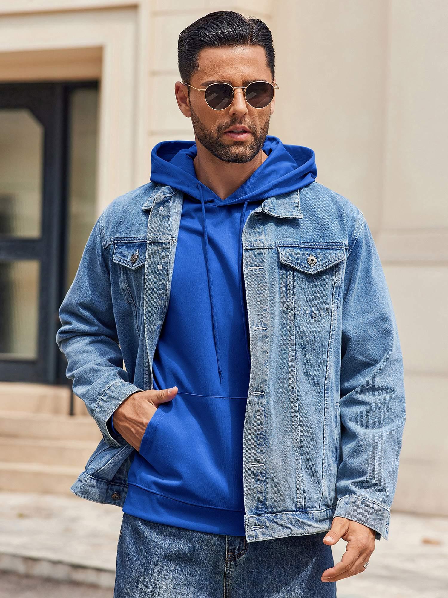 Men's Hoodie Long Sleeve Hooded Pullover Casual Fashion Sweatshirts Drawstring Gym Hooded with Kanga Pocket