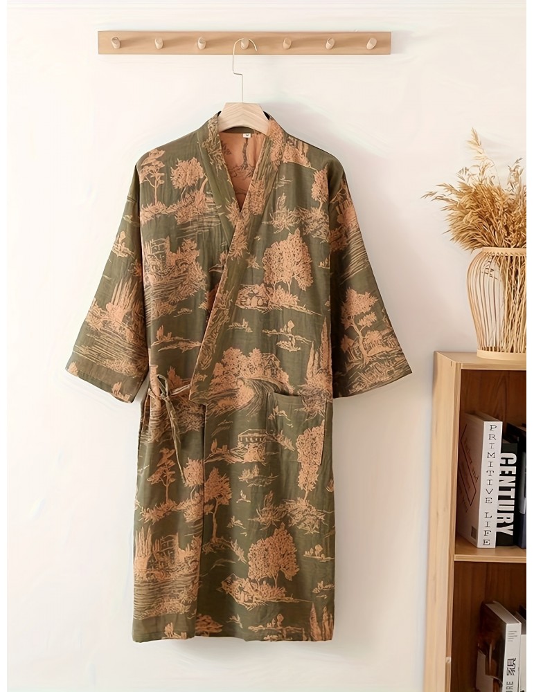 • Spring and Autumn men's kimono pajamas, pure cotton dyed jacquard bathrobes, all cotton long style sweat steaming hot spring clothes