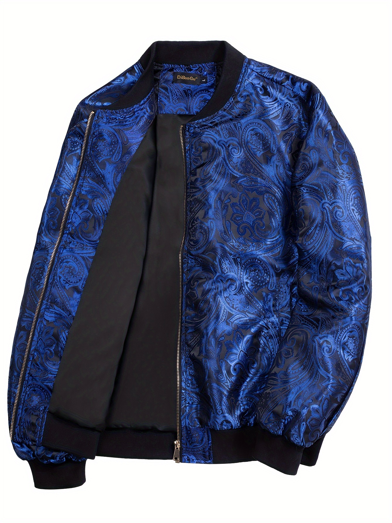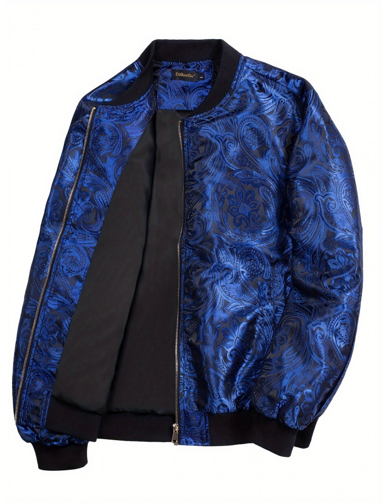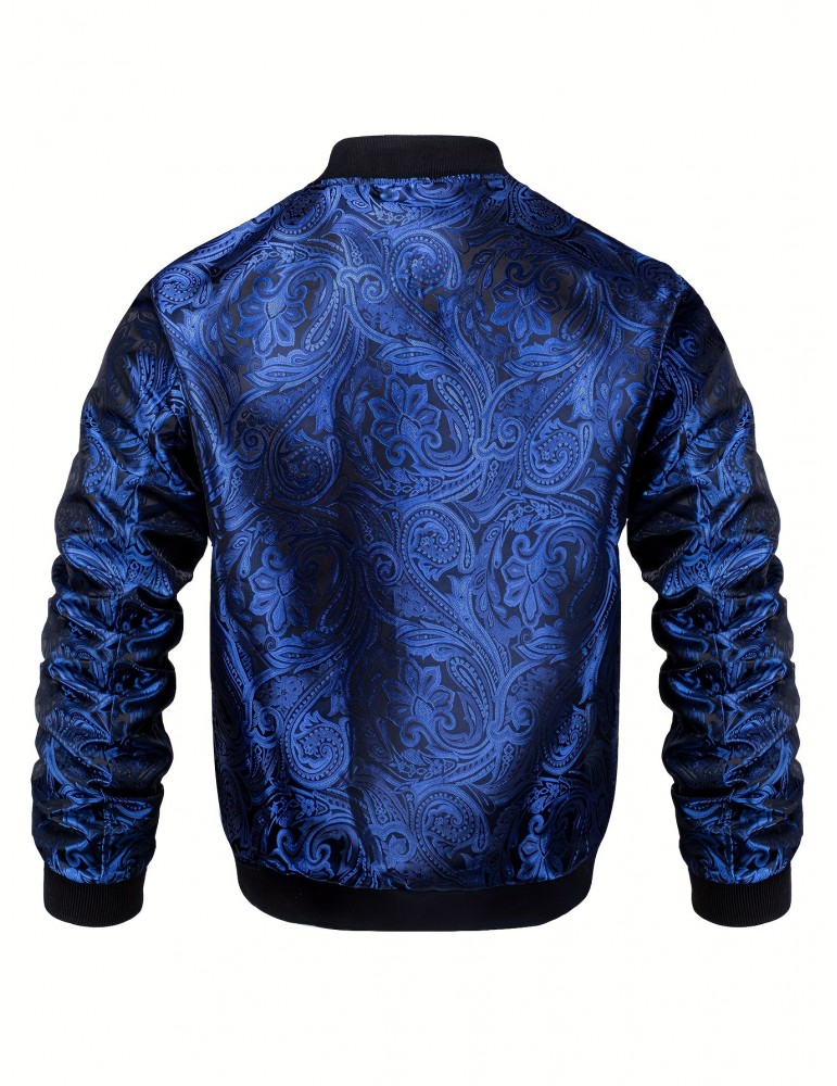 • Men's Jacquard Paisley Jacket Casual Zip Lightweight Windbreaker Bomber Jacket Warm Coat Outwear with Pockets