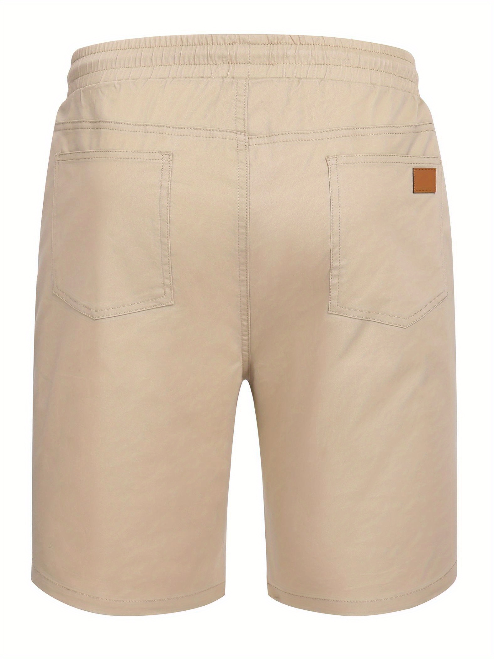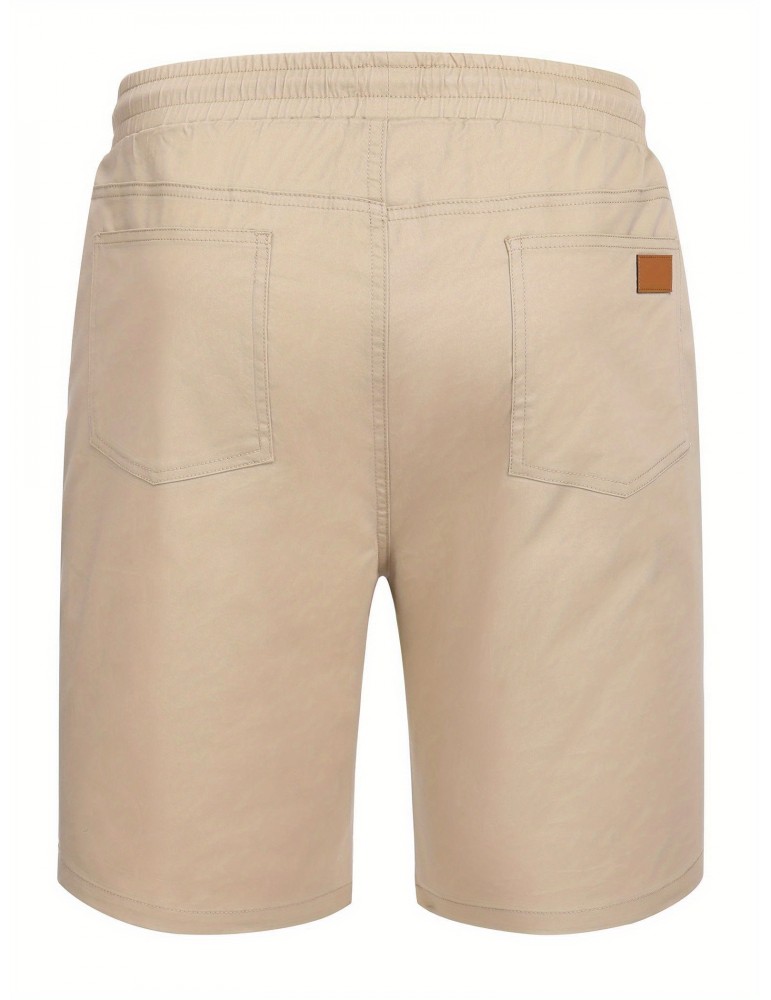 • 1pc Men'S Casual Cotton Shorts with Slight Stretch - Solid Color, Loose Fit, Woven Golf Shorts with Pockets and Drawstring - Summer Beach Chino Shorts with Belt Loops