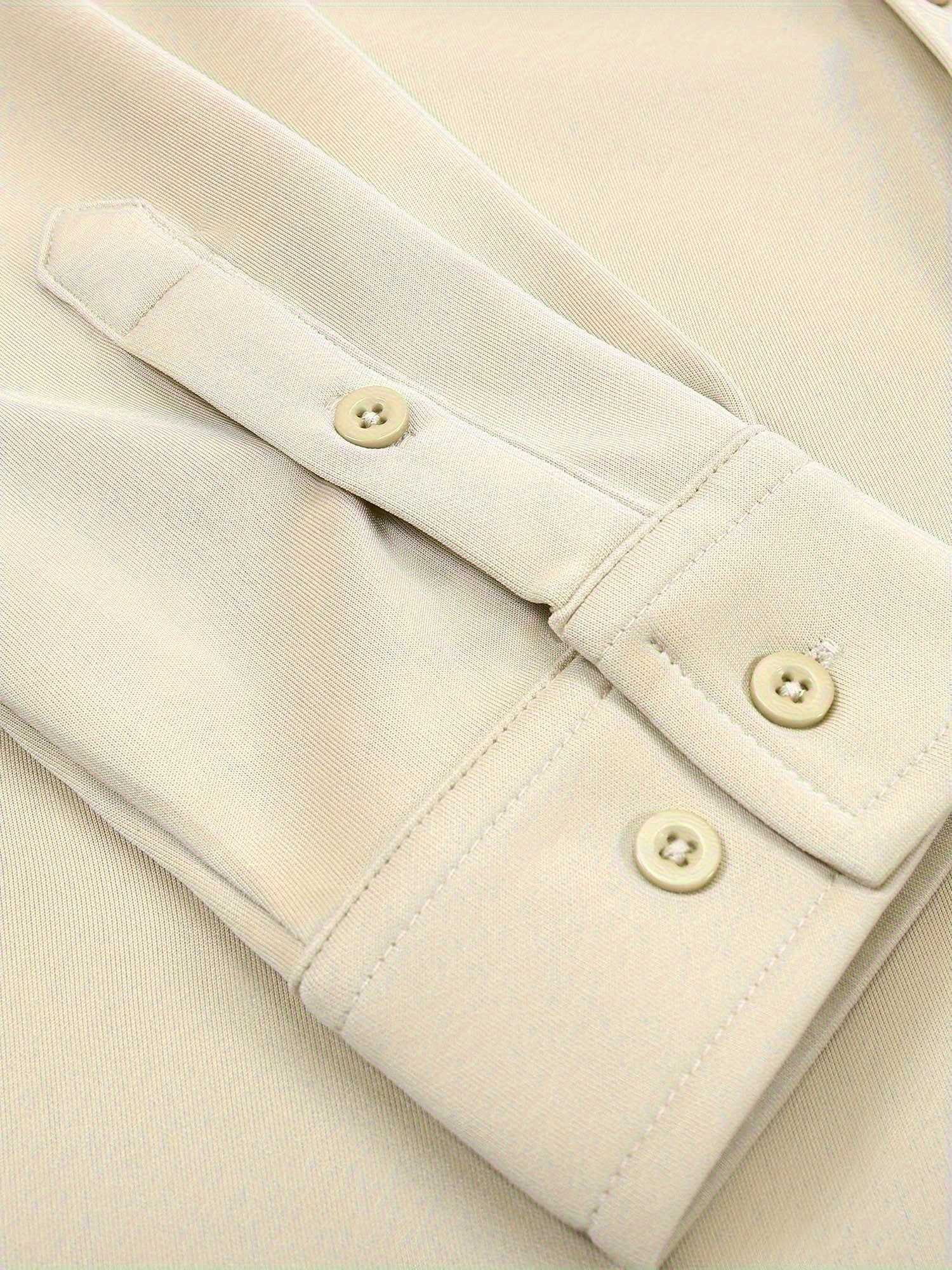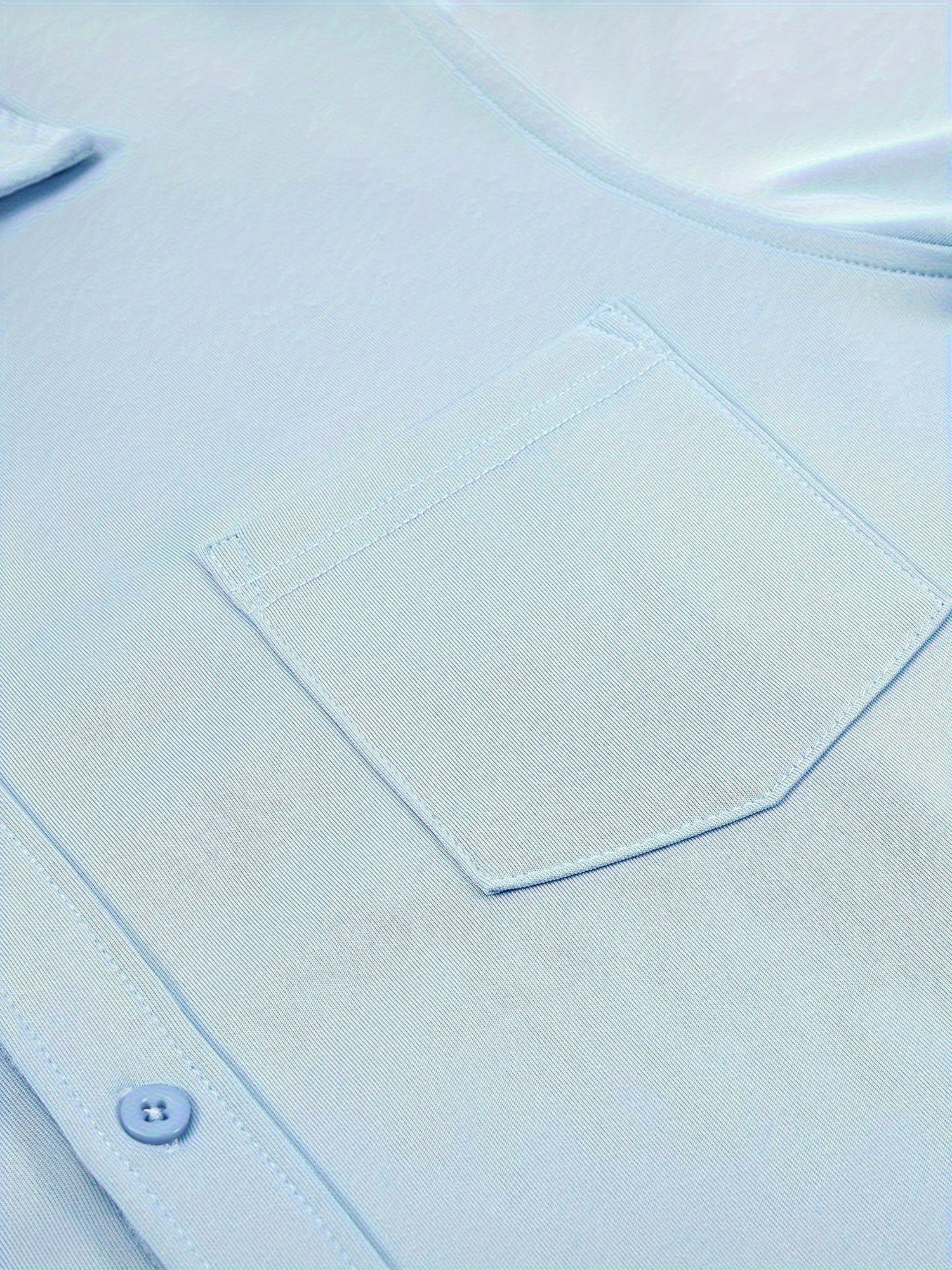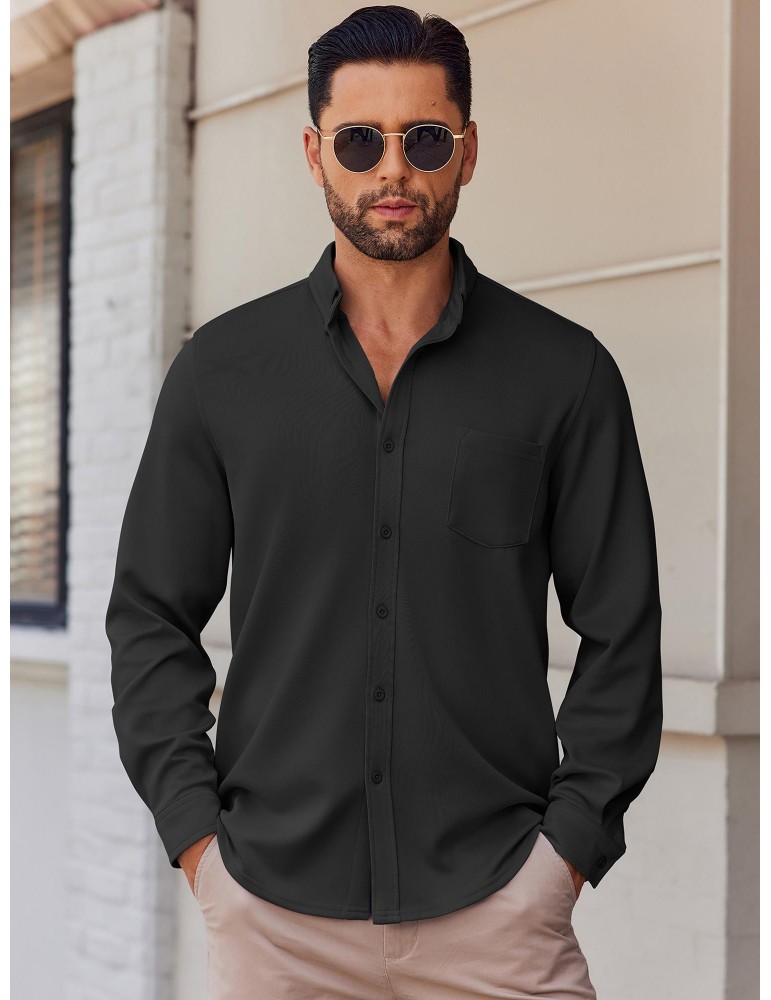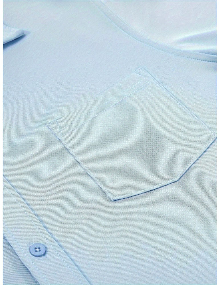 1pc Men'S Casual Long Sleeve Button-Down Shirt with Pocket - Wrinkle Free Polyester, Solid Color, Suitable for All Seasons, Plus Size 1pc Men'S Casual Long Sleeve Button-Down Shirt with Pocket - Wrinkle Free Polyester, Solid Color, Suitable for All Seasons, Plus Size