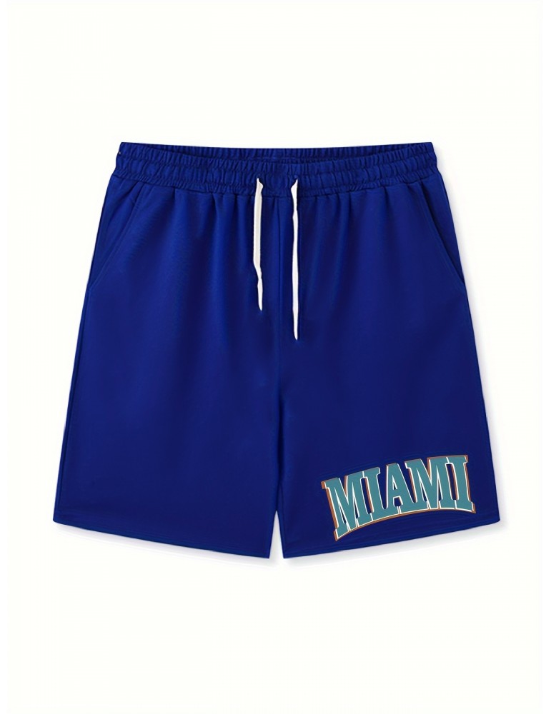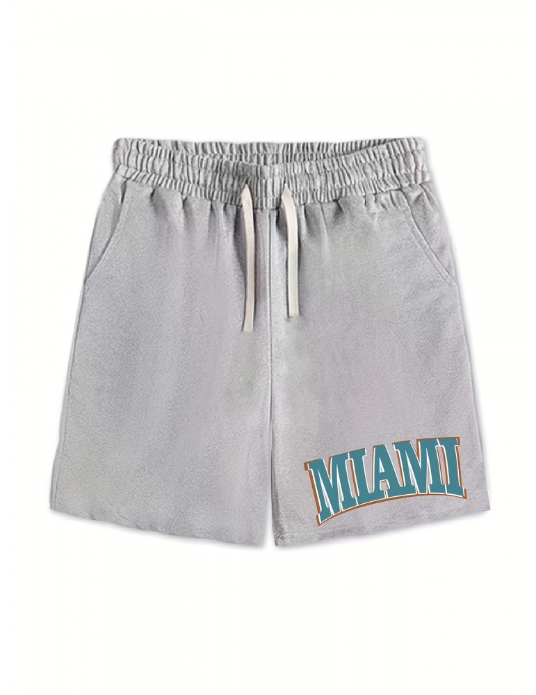 • Miami Print, Men's Breathable Drawstring Pants, Loose Casual Waist Simple Style Comfy Shorts For Spring Summer Outdoor Fitness Cycling Climbing Mountain Holiday Daily Commute Dates Sports Workout Trousers