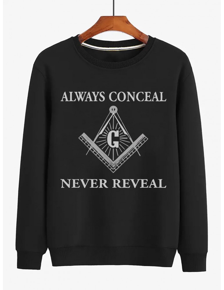 Plus Size French Terry Crew Neck Sweatshirt, Casual Long Sleeve Knit Top, Comfortable Regular Fit Pullover with Slight Stretch, with Masonic-Inspired Print, for Autumn and Winter