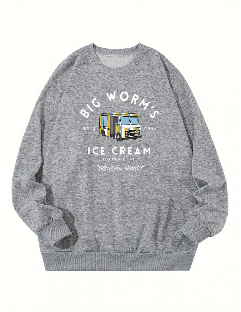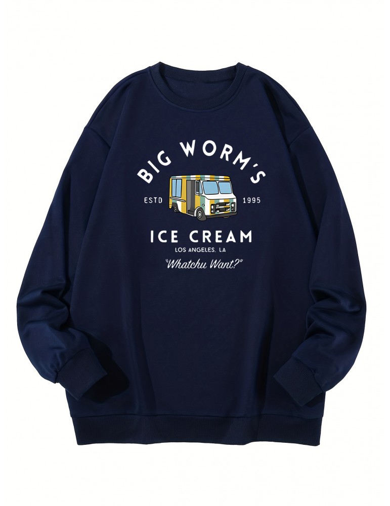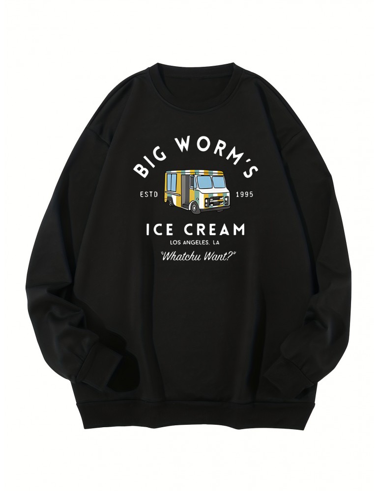 • Plus Size Men's Stylish Loose Car Pattern Sweatshirt, Casual Breathable Crew Neck Long Sleeve Top For City Walk Street Hanging Outdoor Activities, Men's Clothing