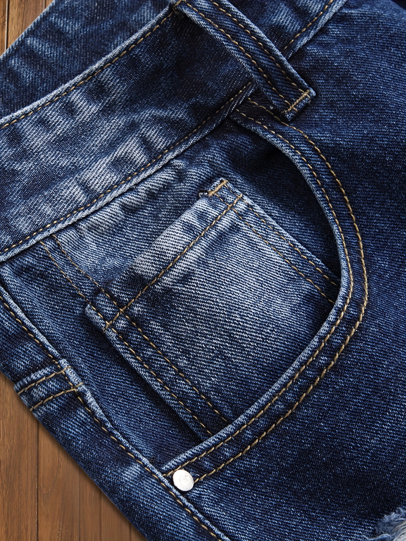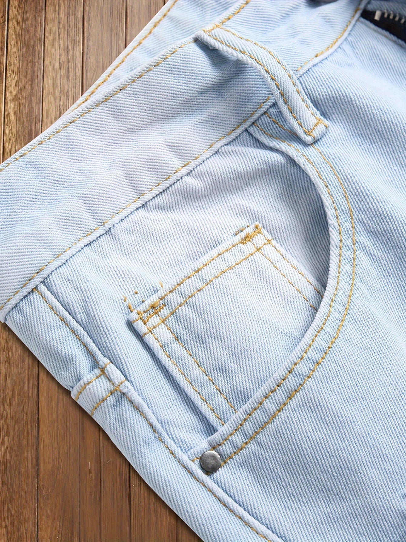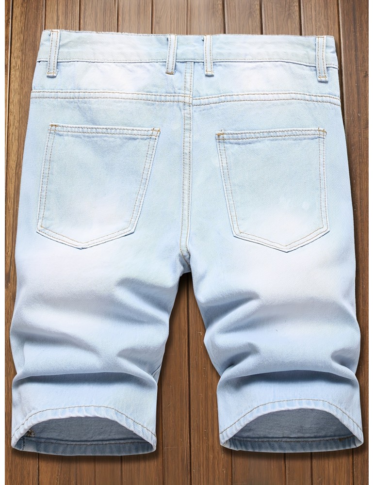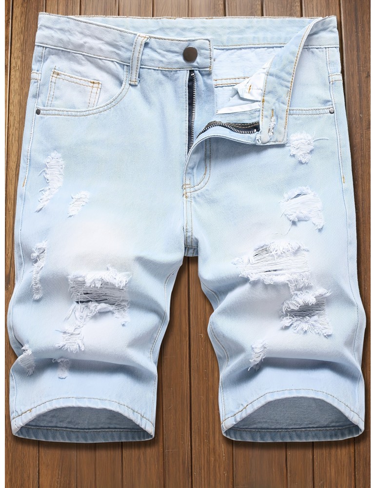 • Trendy, Men's Slim-Fit Ripped Denim Shorts - Street Style, Cotton Blend, Machine Washable