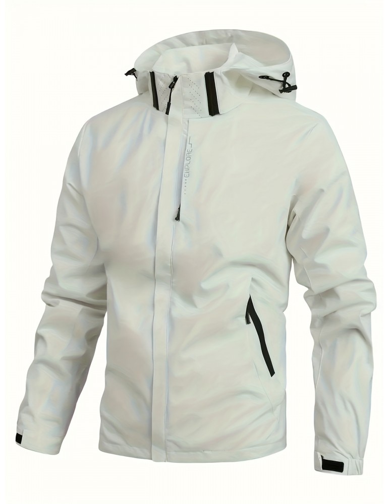 chic solid windbreaker hooded jacket mens casual zip up jacket coat for   outdoor activities details 1