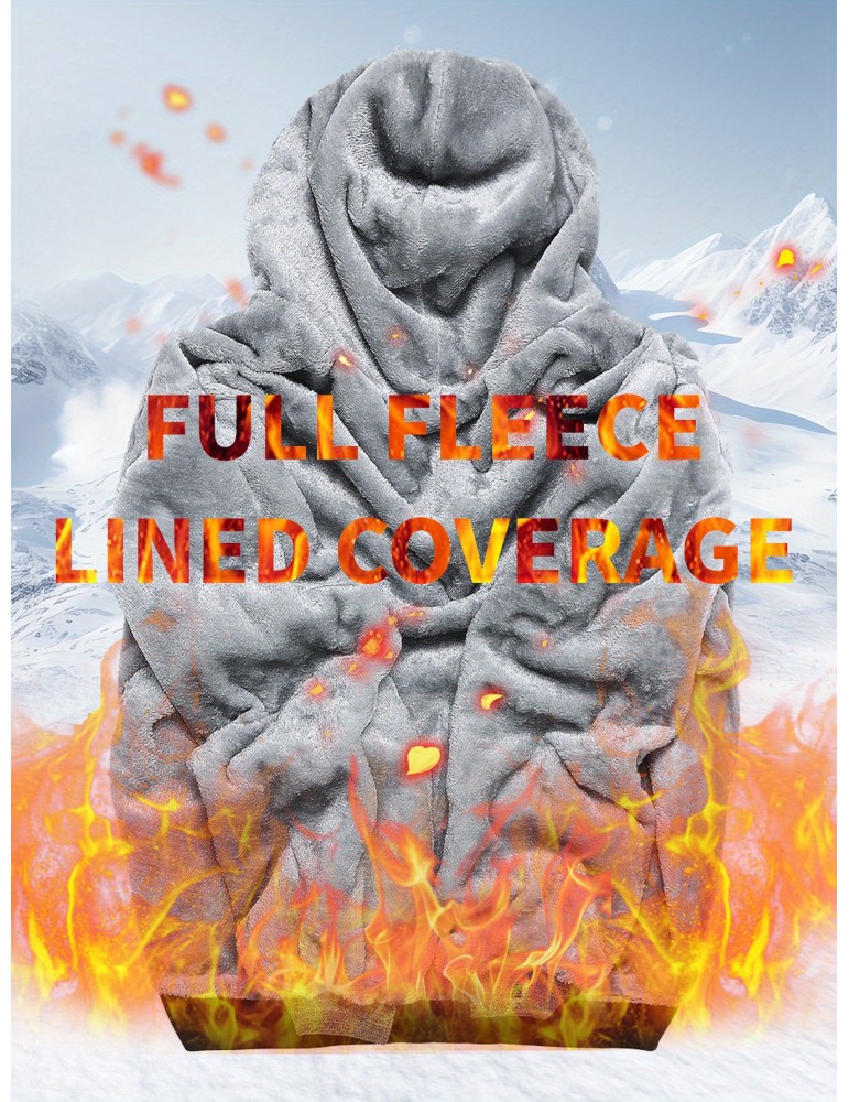 Winter Men's Fleece Hoodies Full Zip Up Coat Hooed Sweatshirt Warm Thick Coats Kangaroo Pockets