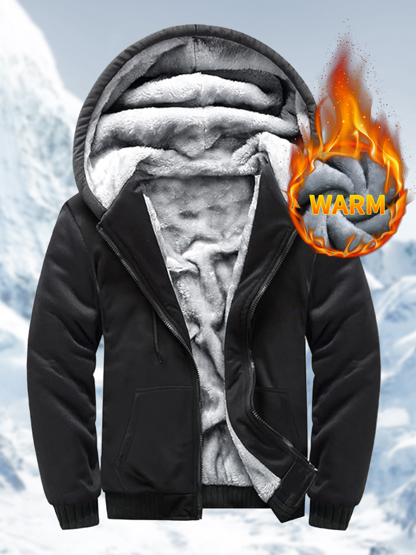 winter mens fleece hoodies full zip up coat hooed sweatshirt warm   coats kangaroo pockets details 6